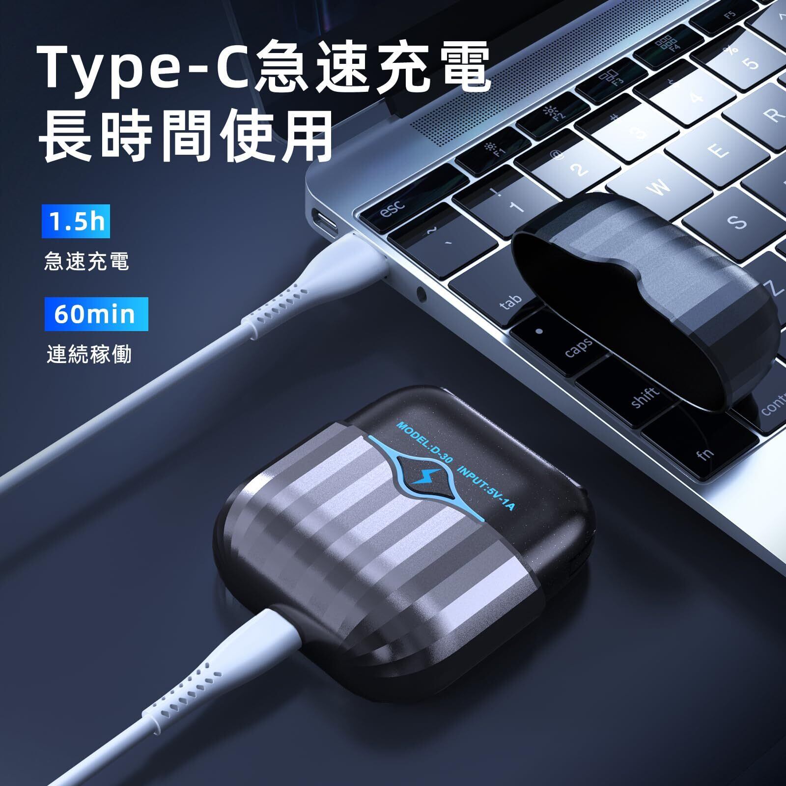 【Type-C急速充電・長時間使用】国際標準のType-C急速充電ポートを備えており、パソコン、ACアダプター、モバイルバッテリー、車載充電器などでどこでも簡単に充電可能です。出張、旅行、オフィスでも電力がなくなる心配はありません。1.5時間で充電でき、60分間使用可能。