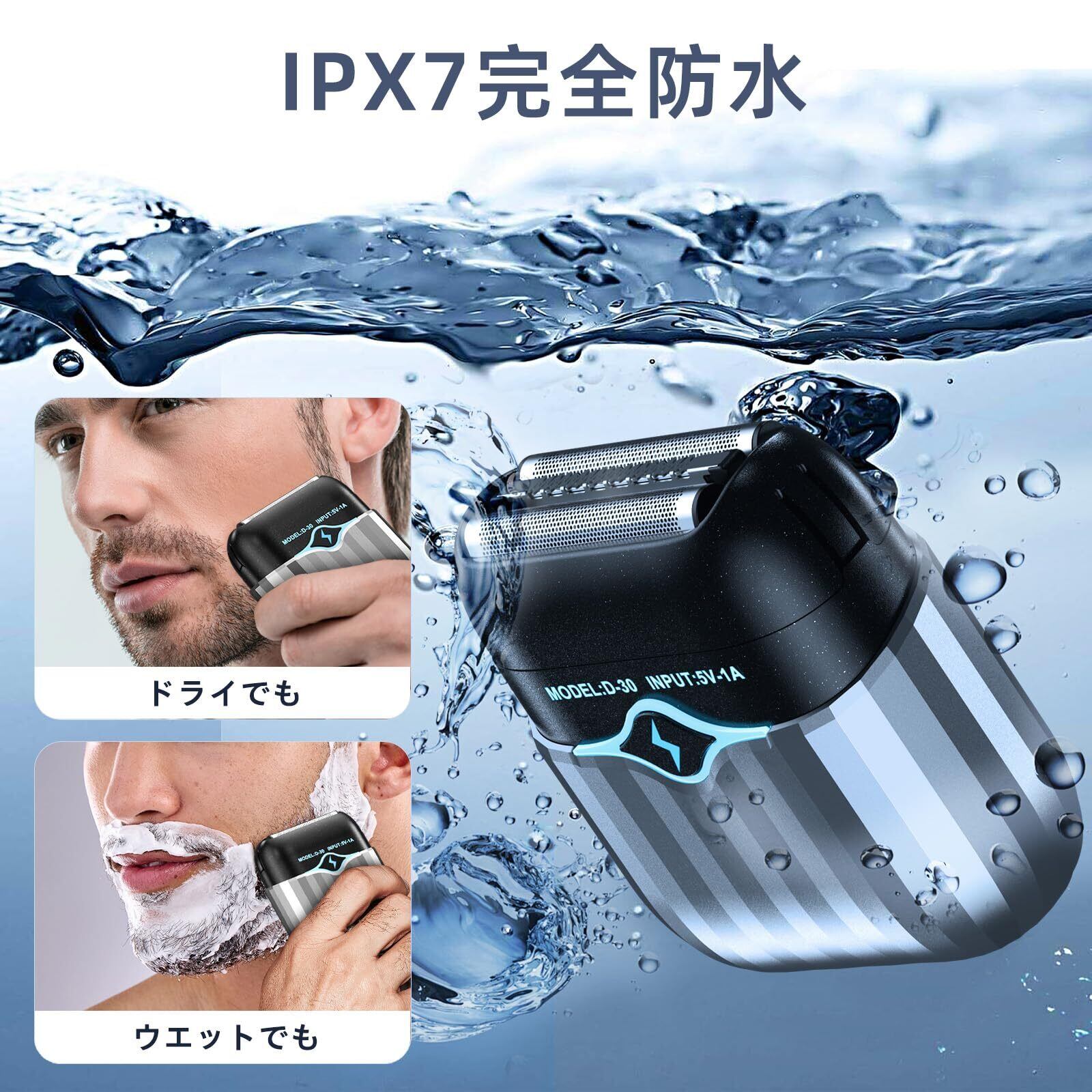 【IPX7全身防水・乾湿両用】このメンズ シェーバーはIPX7レベルの防水性能を備えており、ウェット派でもドライ派でも快適に使用できます。IPX7防水仕様により、全面的な水洗いが可能です、簡単に清潔洗浄です。 乾湿両用で、異なるシェービング要求を満たすことができます。