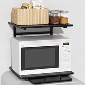 UTIMIU 冷蔵庫上ラック レンジラック スライド棚付き キッチン 収納ラック 食器棚 幅47.5×奥行43.5-69.5×高さ45cm 電子レンジラック 冷蔵庫上棚 隙間収納 組立品 (ブラック)