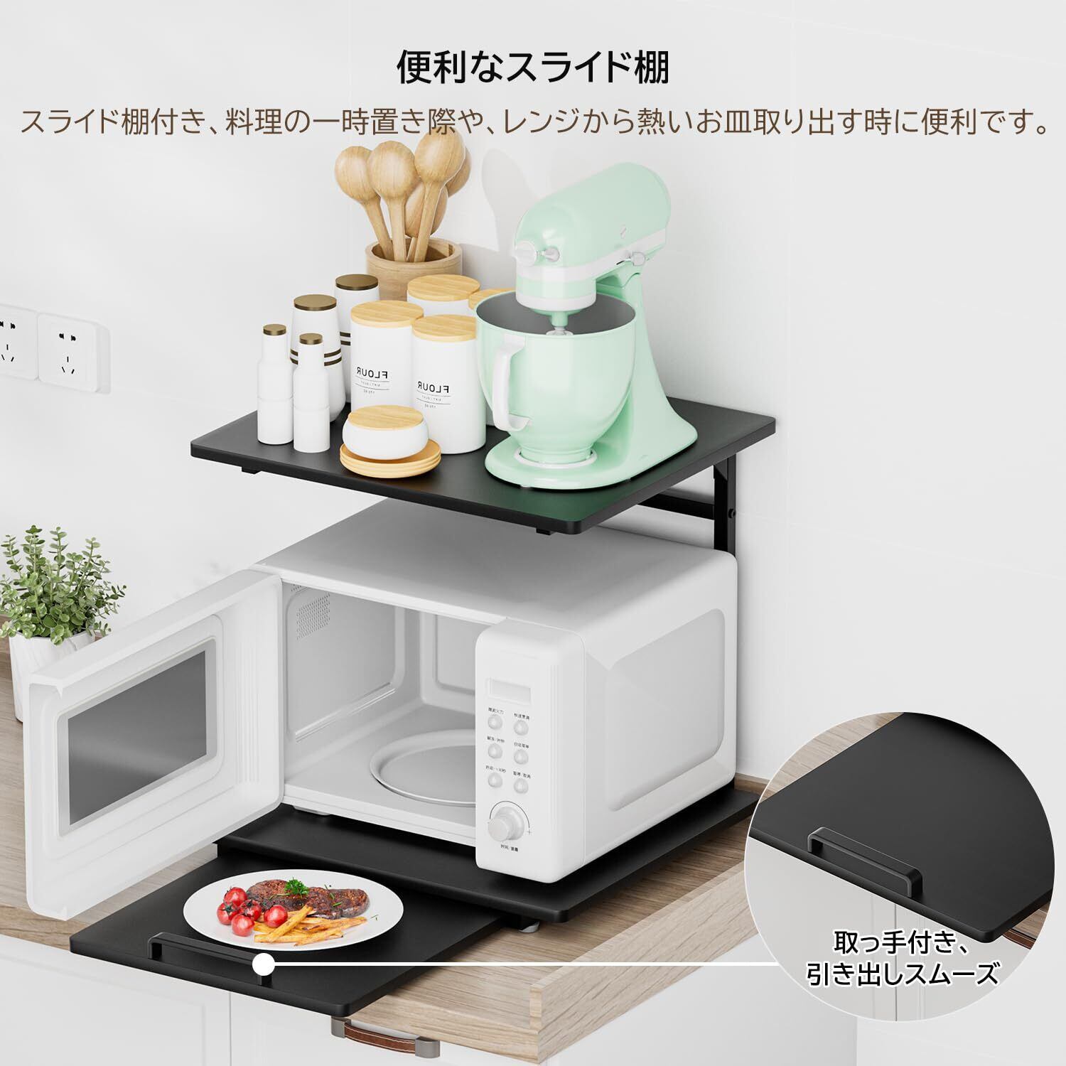【2022最新】UTIMIU 冷蔵庫上ラック レンジラック スライド棚付き キッチン 収納ラック 食器棚 幅47.5×奥行43.5-69.5×高さ45cm 電子レンジラック 冷蔵庫上棚 隙間収納 組立品 (ブラック) | ニコニコSHOP