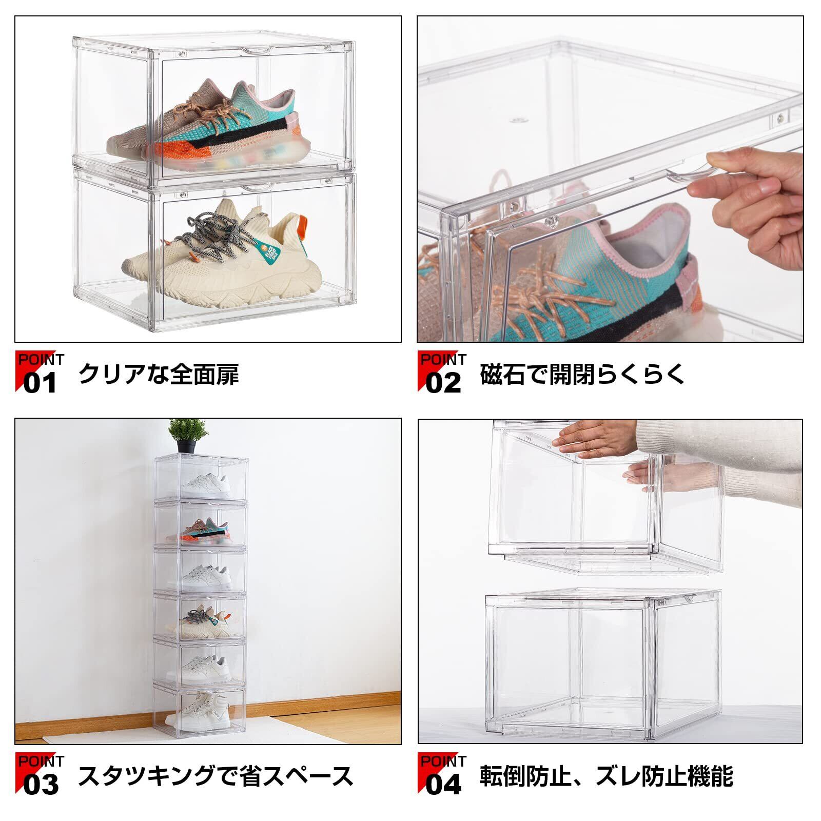 八番屋 シューズボックス クリア 透明 スニーカーボックス スニーカー 収納ボックス 収納ケース 靴ケース 靴 箱 棚 収納 ケース(クリア2個セット)