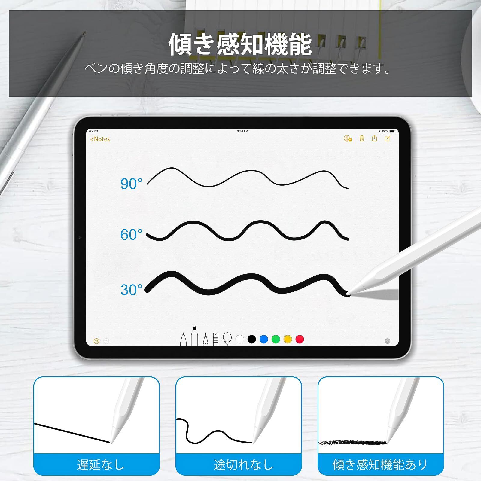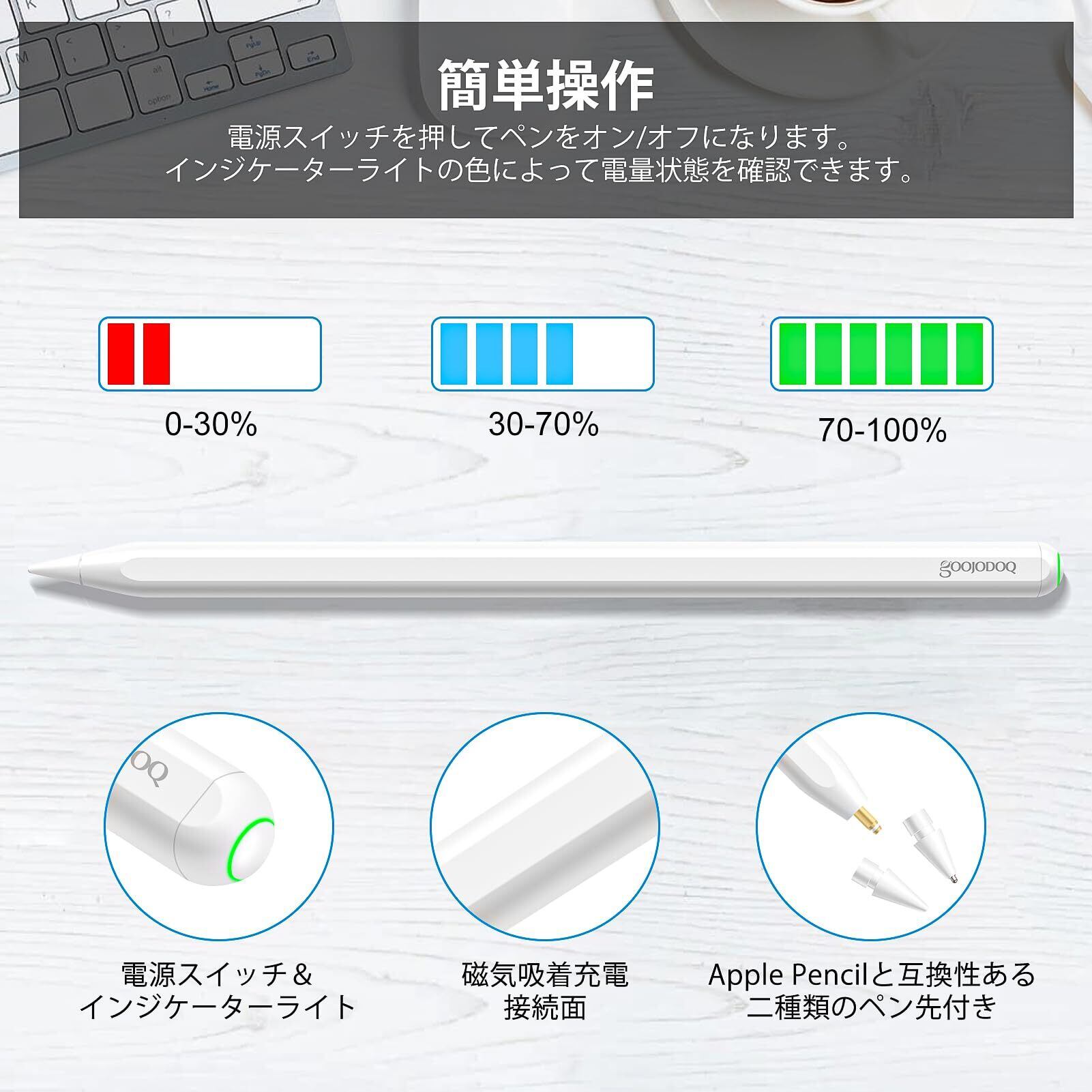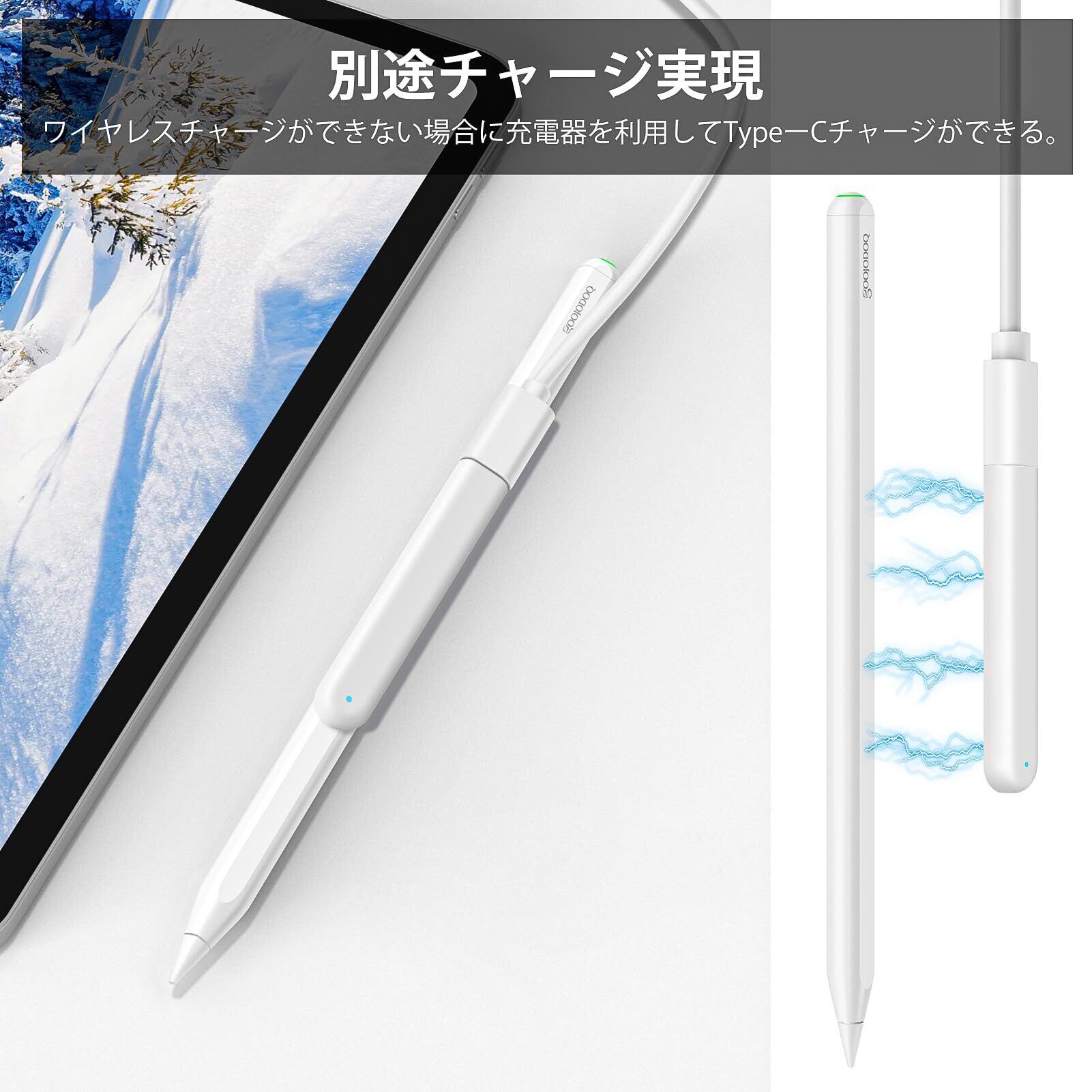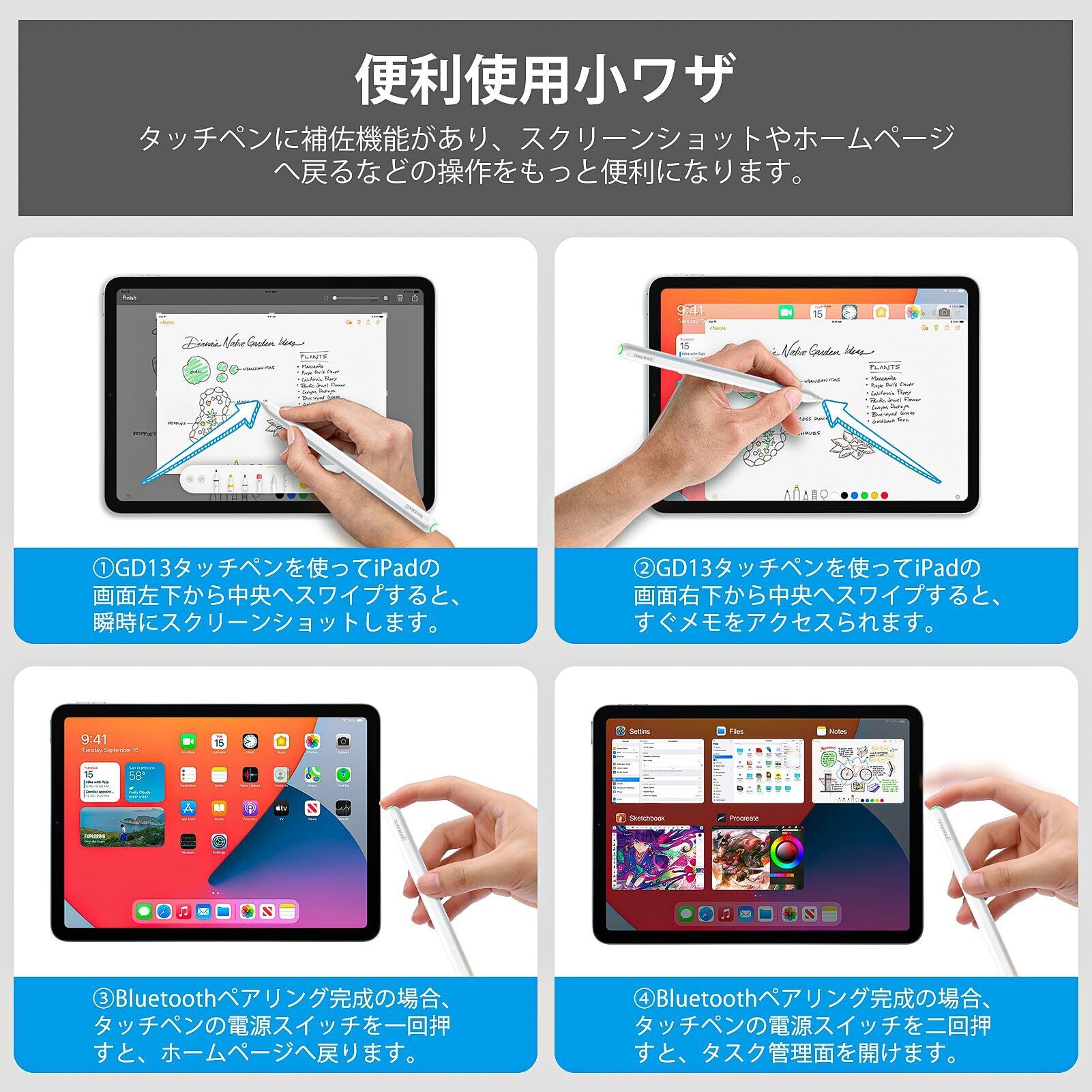 GOOJODOQ 新型 GD13+ スタイラスペン ワイヤレス充電式+Type-C充電式 iPad用 タッチペン Bluetooth ペンシル 高感度 傾き感知 交換ペン先付き 途切れなし 軽量 マット仕上げ iPad air4/5/iPad Pro11/iPad Pro12.9/iPad mini6吸着充電対応外 別途チャージ可能