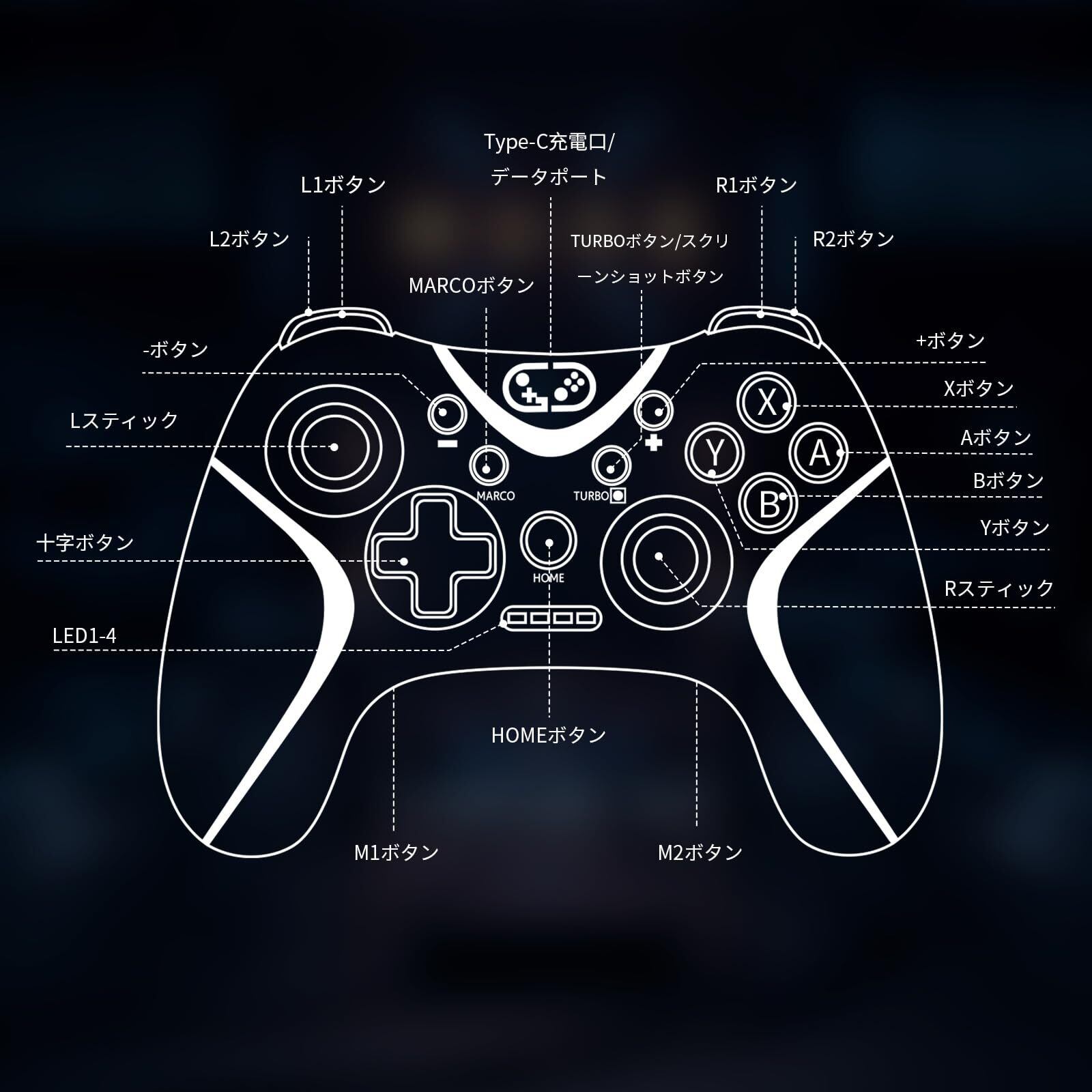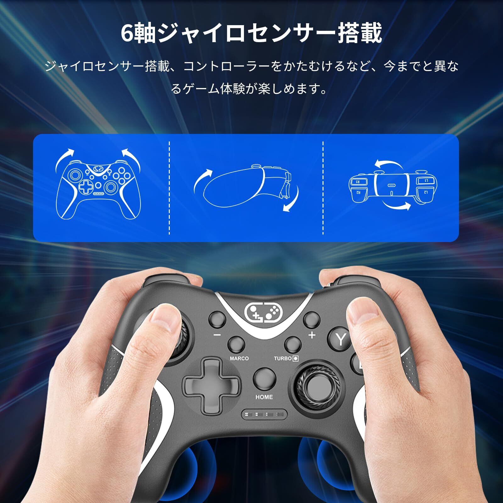 【6軸ジャイロセンサー搭載&自動連射(連射ホールド)機能】純正プロコンと同等の高感度6軸ジャイロセンサーを搭載し、コントローラーの傾きや動きを検知できます。(一部のゲームでジャイロセンサーが反応しない場合は、ゲーム内でまたは本体設定で補正することを試してください。)視点移動や傾け操作などが簡単に実現し、今までと異なるゲーム体験が楽しめます。スクリーンショット機能付き、Turboボタンをワンタッチでゲームの画像を簡単に保存しております。また、本コントローラーは自動連射機能付き、TURBOボタンと設定したいボタン(A/B/X/Y/L1/L2/R1/R2ボタン)を同時に押して、手動連射になって、再度押すと、自動連射(連射ホールド)になって、三度目押すと、連射が解除されます。Turbo連射速度は3段階(毎秒5/15/20回)の微調整ができ、ゲームや自分のプレイスタイルに合わせて設置できます。