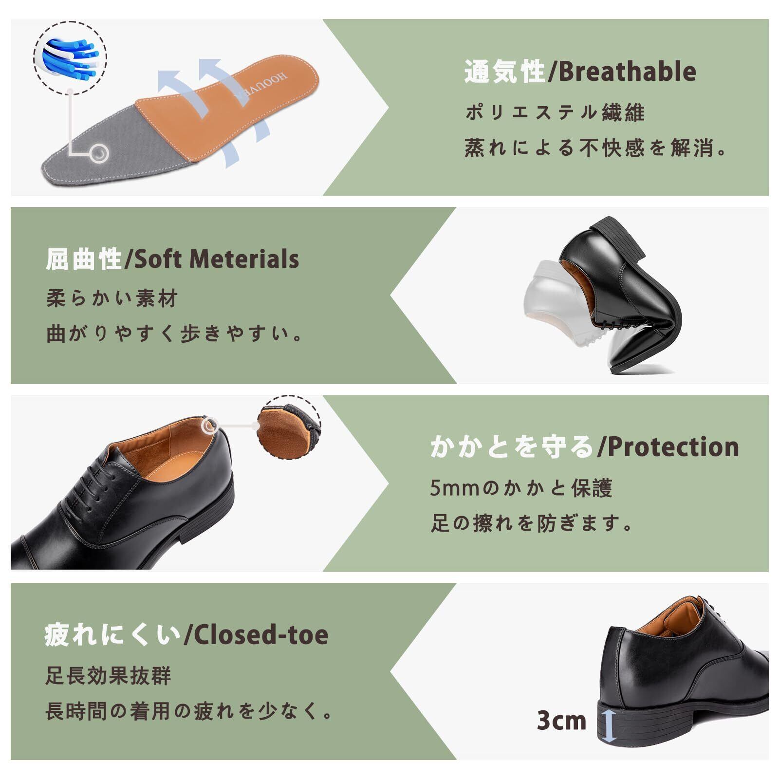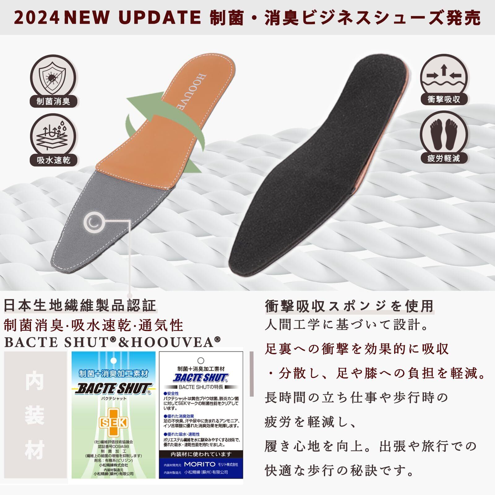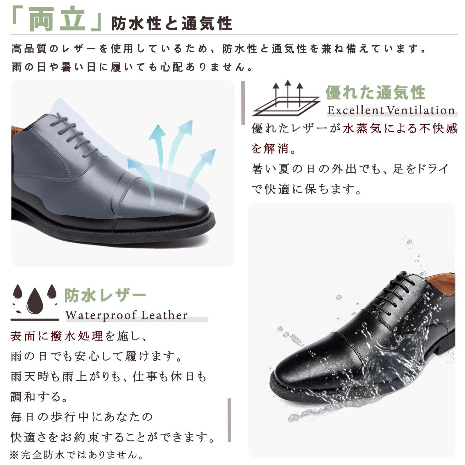 [Hoouvea] 革靴 ビジネスシューズ メンズ 紳士靴 防水 通気 制菌 消臭 ビジネス 走れる ドレスシューズ 防滑 防臭 ウォーキング ストレートチップ 高級紳士靴 内羽根 高級レザー 24.5㎝~28.5㎝