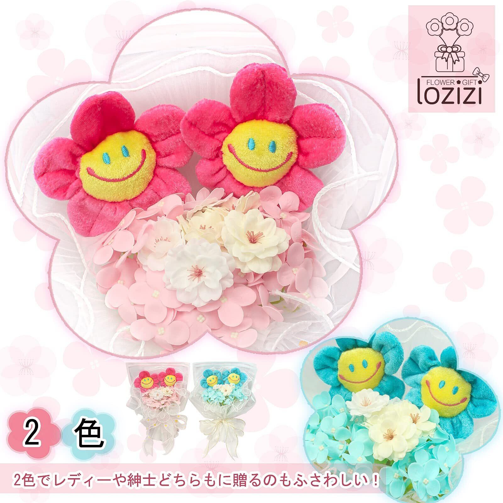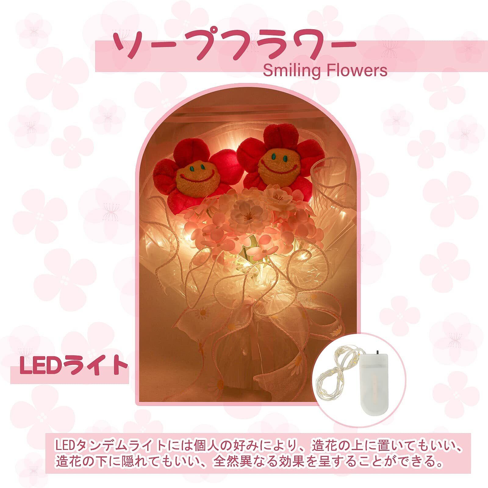 LOZIZI 光る スマイルフラワー 韓国 ぬいぐるみ花束 LED付き 枯れない花 石鹸花 アジサイ 桜の花 卒業祝い 母の日プレゼント (LED(red))