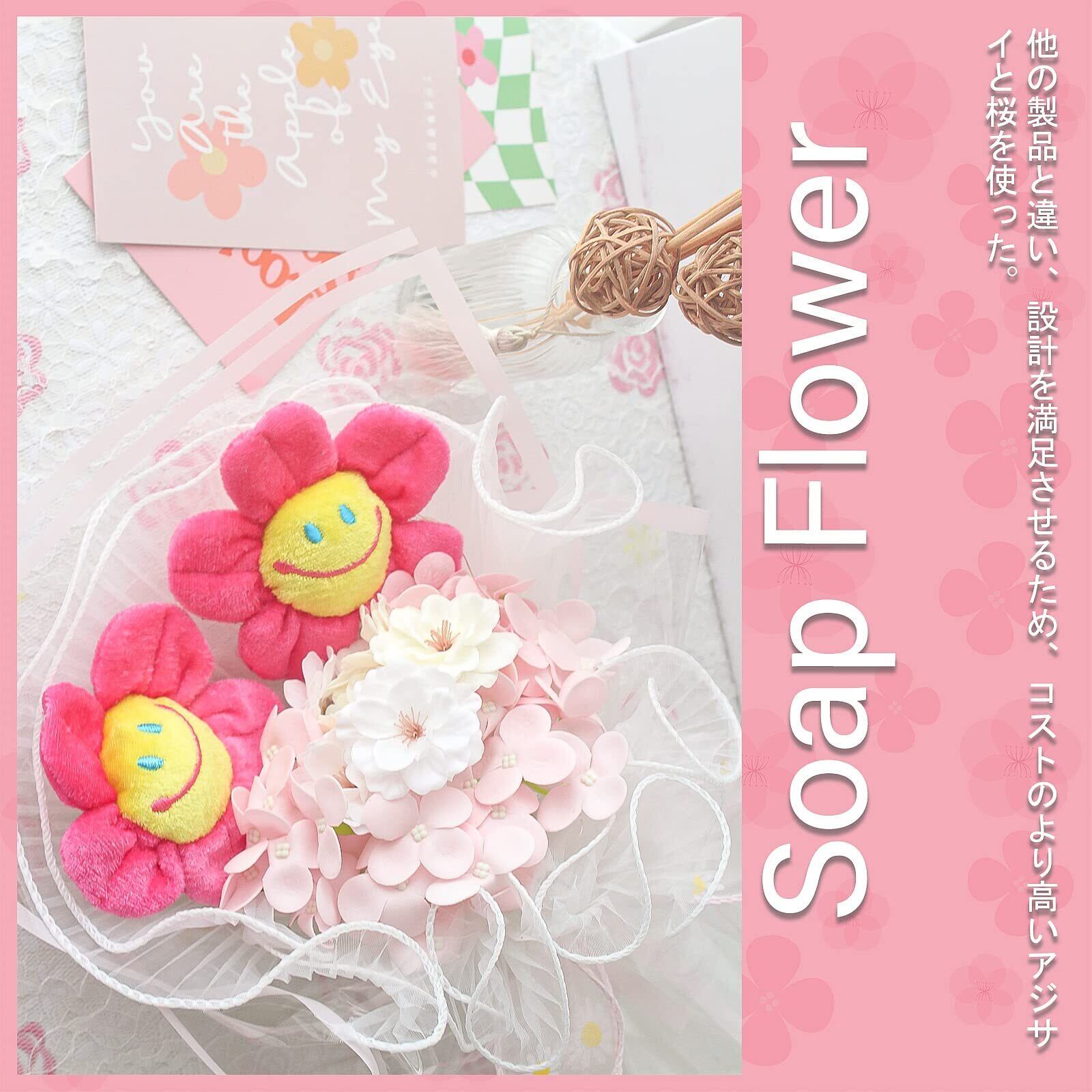 『製品特徴』高品質の石鹸材料で作った花束は本物とそっくりできれいだ。微笑み花は縫いぐるみ素材を採用し、枯れなく、長期に保存できる。もらったお方は観賞する場合美しい記憶を思え出すことができる。室内装飾として、観賞できる。母親の日プレゼント、出産祝い、誕生日プレゼント、クリスマス、ホワイトバレンタインデー、結婚贈り物、敬老の日、先生の日、入学、卒業式、発表会、引っ越し、新居お祝い等各種の場面