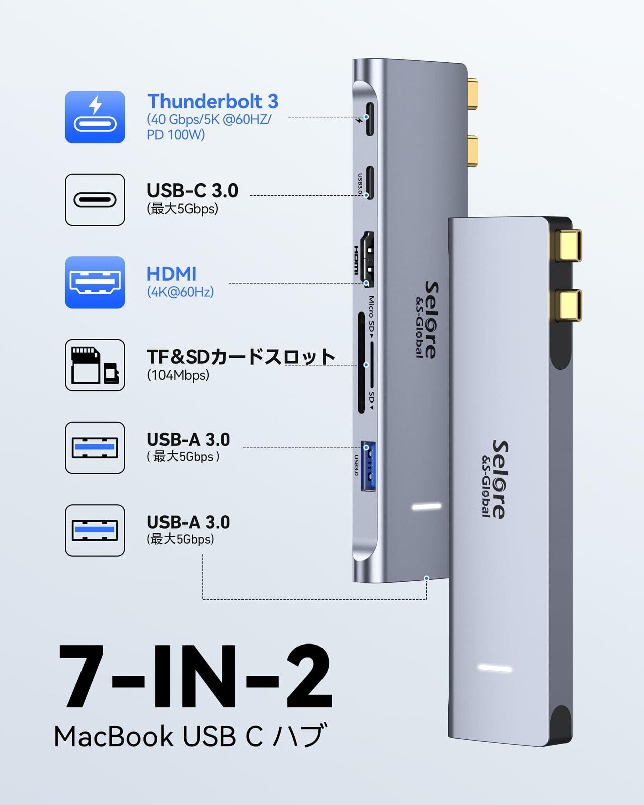【人気商品】MacBook Air ハブ macbook ハブ mac ハブ 7in2 Macbook Pro/Air専用 4K@60Hz対応 HDMIポートThunderbolt 3ポートUSB-C PD メディア ハブ 100W Power Delivery 対応 | ニコニコSHOP