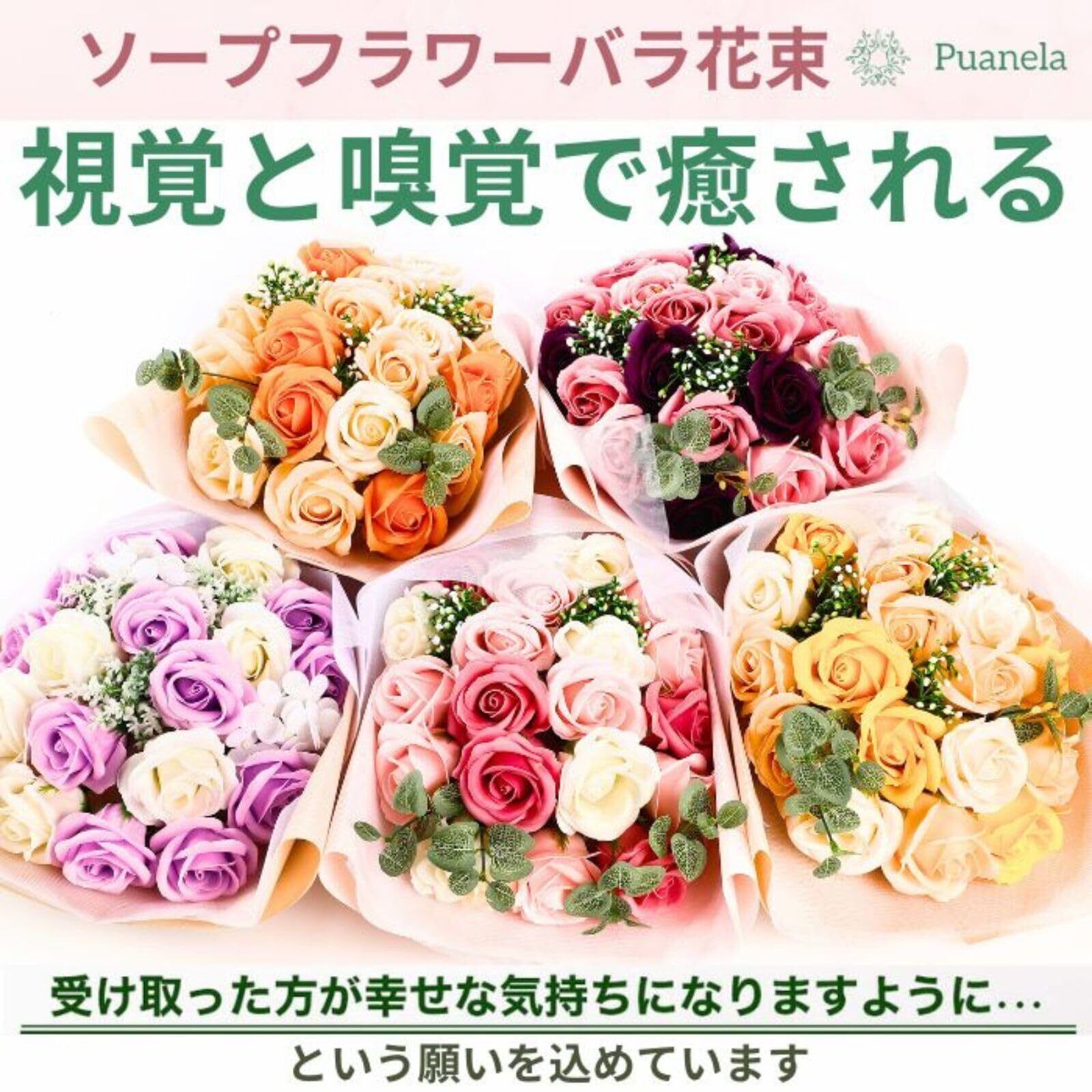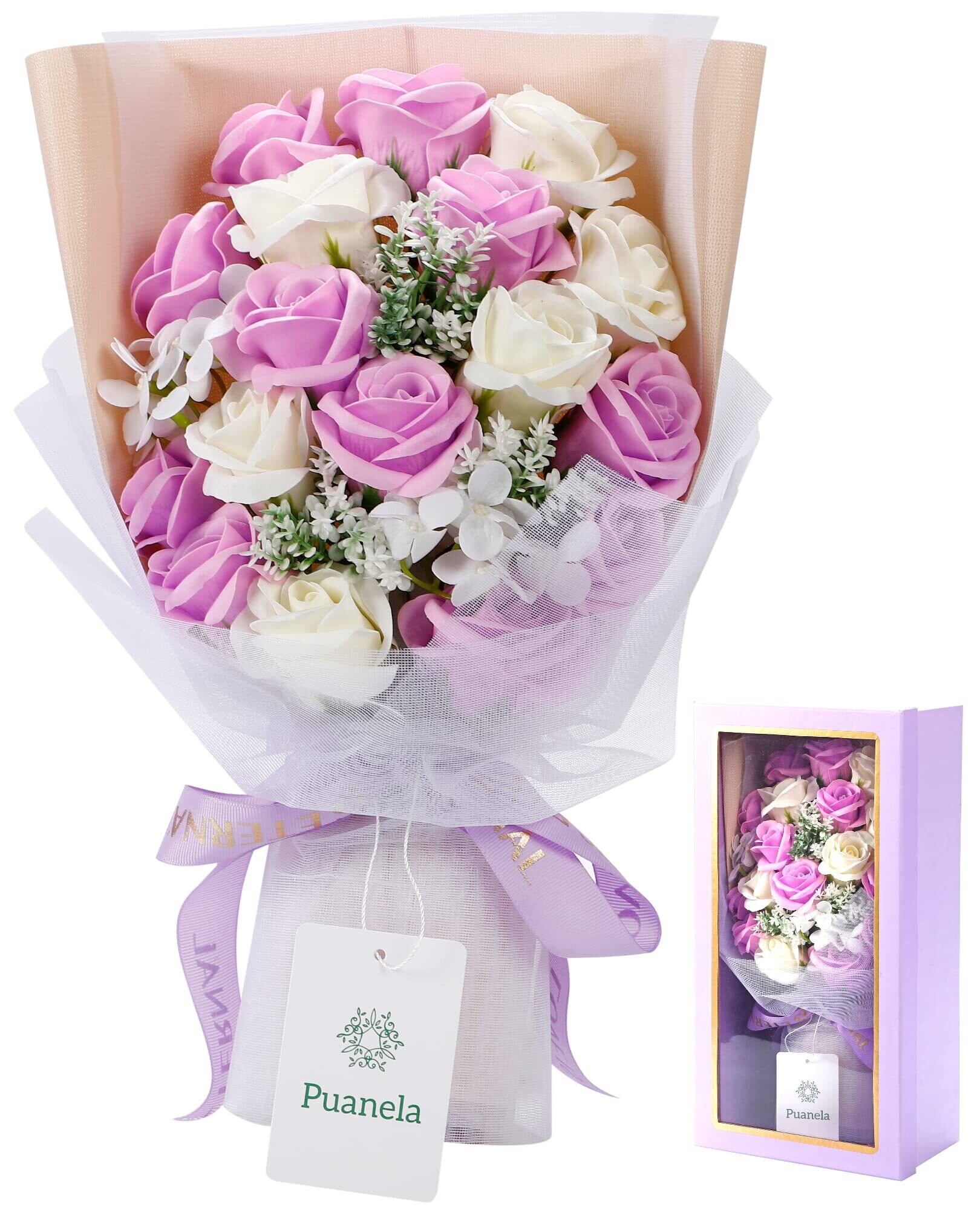【特価セール】【anan掲載・プロ監修】 Puanela ソープフラワー 花束 誕生日 プレゼント 女性 ギフト 人気 母の日 退職 敬老の日 お祝い 花 造花 バラ (ライラック) | ニコニコSHOP