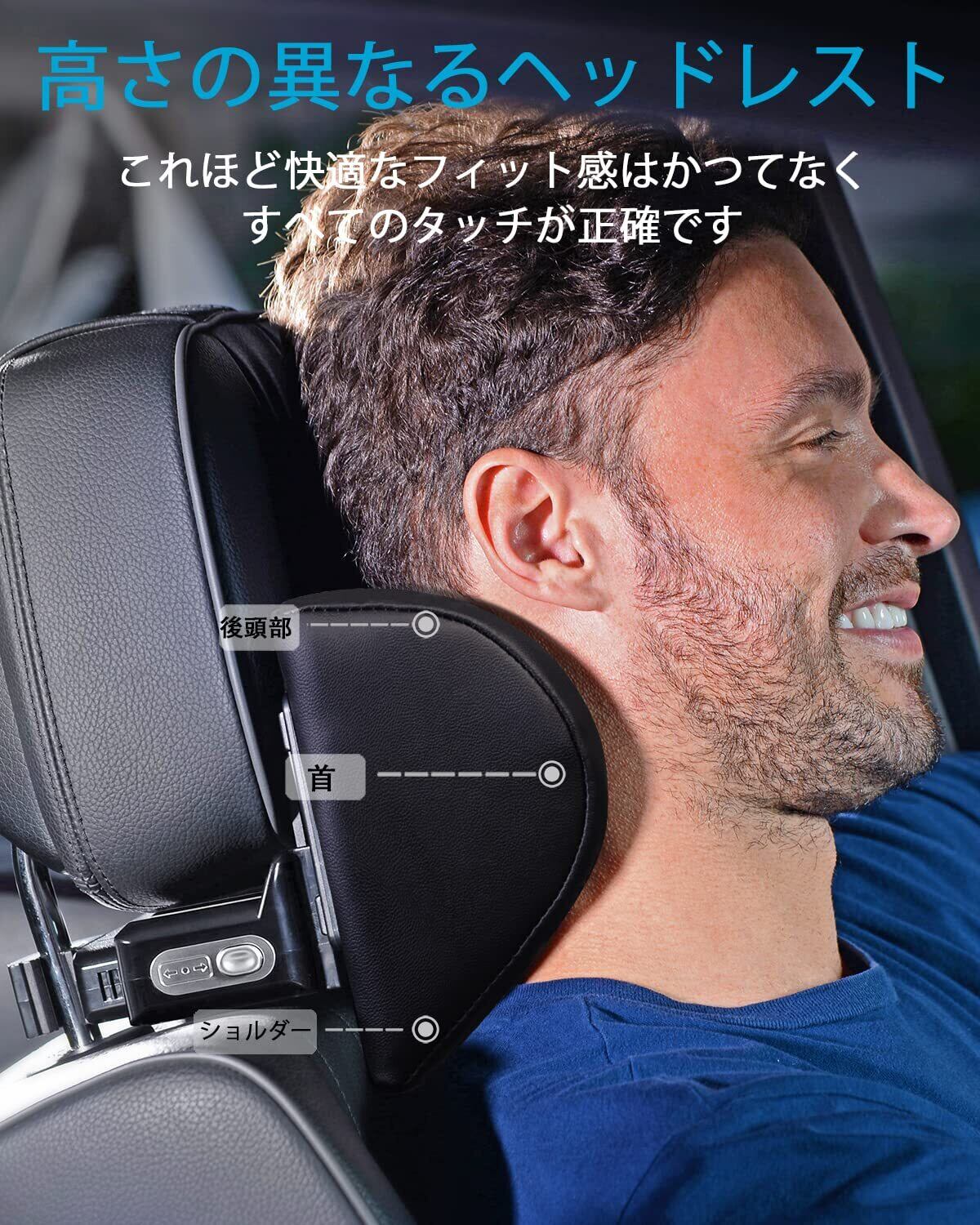 【独占デザイン】自由に4方向(上下向き、前後向き)に調整可能なデザインで、身長差ある方にも適しています。人間工学に基づいて、u型カーブに設計された車ネックピローはネックと金属棒間の隙間を埋め、ピローとネックがぴったりとフィットさせたため、頭・肩・頸椎への圧力を分散でき、首や背中の痛みを軽減できます。痛みが悩んでいた運転手はこの車ヘッドレストを使って快適に運転できます