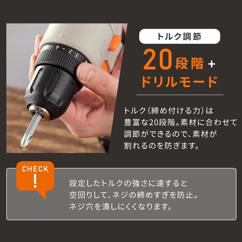 アイリスオーヤマ 1台5役 10.8V マルチギア 充電式ドリルドライバーセット バッテリー付 充電器不要 type-C 充電 PJM10DRS サンドベージュ
