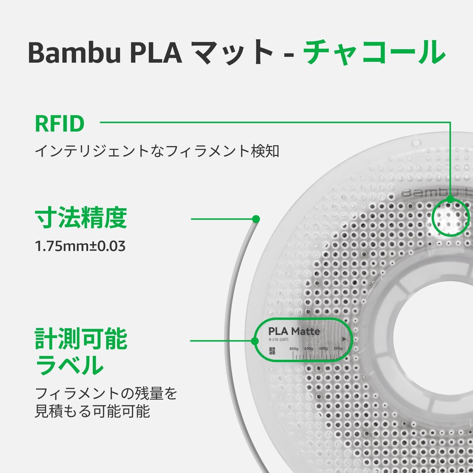 【特価セール】Bambu Lab マット PLA 3Dプリンター マット仕上がり PLA 3D プリントフィラメント 高精度 絡みが少ない 反り少ない スプール無し AMSと使用可能 3Dプリント造形造形材料 1.75mm 1kg チャコール | ニコニコSHOP