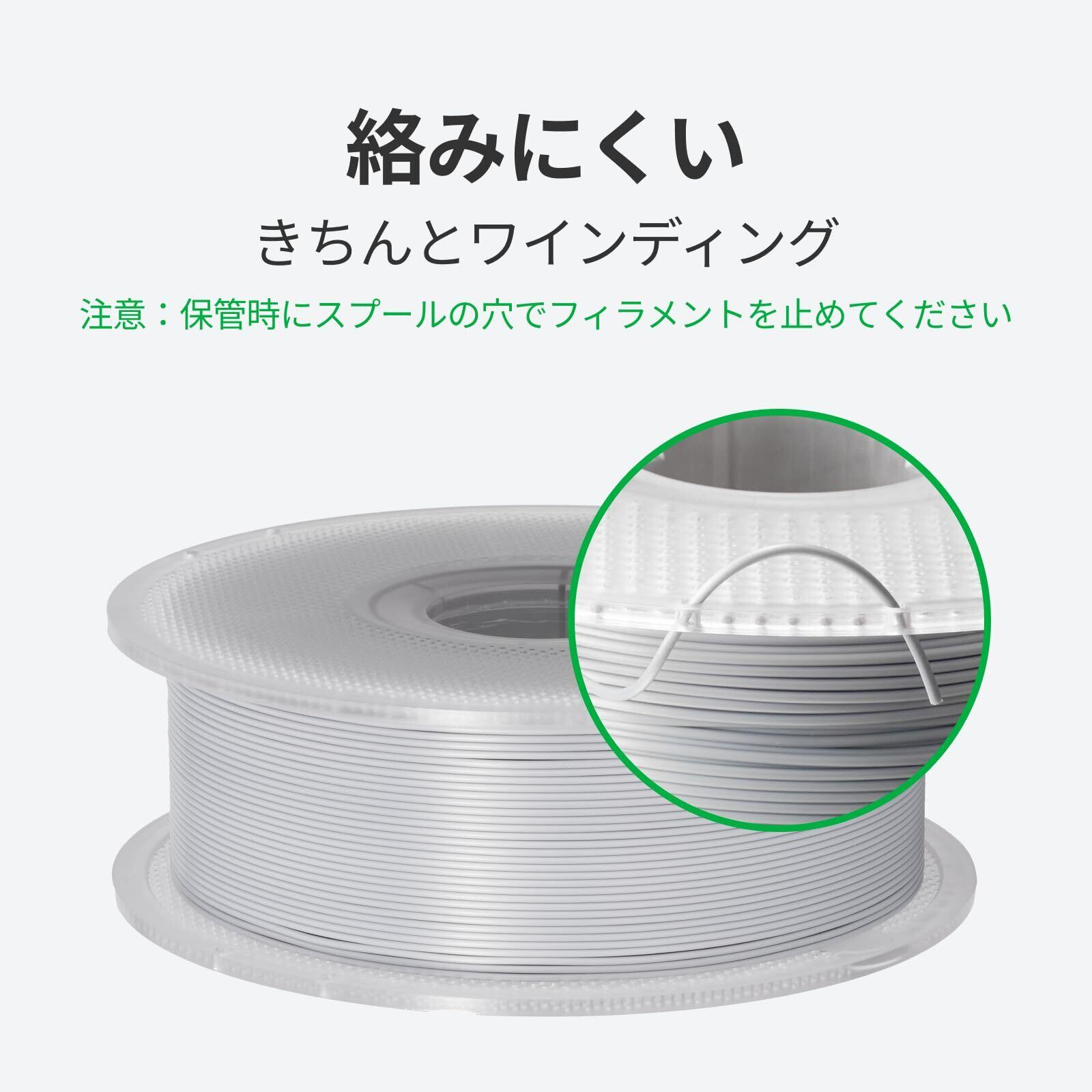 注:この製品はBambu PLAマットフィラメントで、スプールは含まれていません。使用前にスプールを装着してください。Bambu 再利用可能なスプールまたは自分で印刷されるスプールを利用できます。