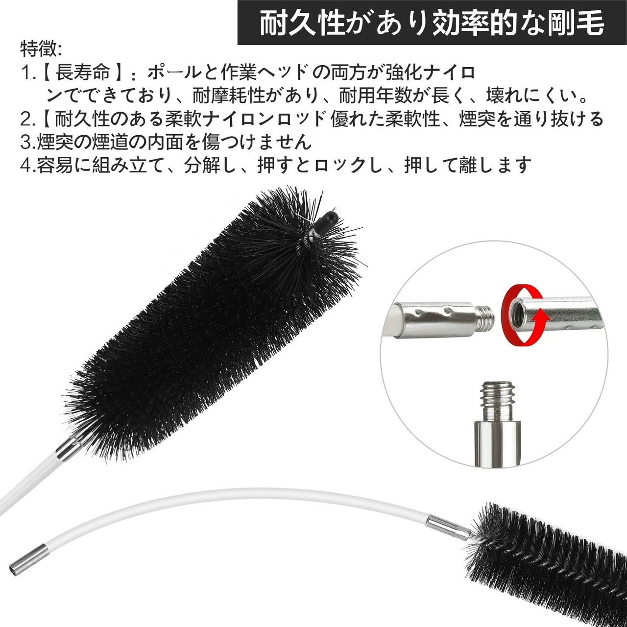 【製品仕様】サイズ:約直径60mm×長さ320mm×厚さ0.5mm、素材:ステンレススチール、セット内容:薪ストーブ用の延長煙突(4本)と、清掃用ブラシ(1本)の合計5点セットです。