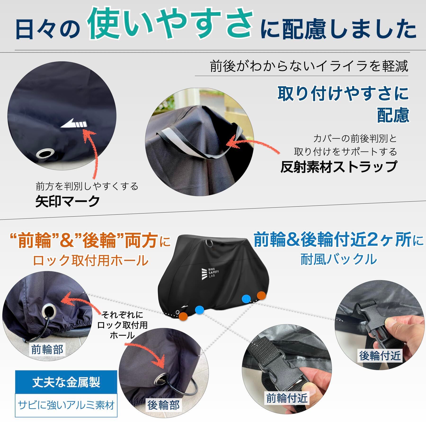 Bike Safety Lab 厚手自転車カバーシリーズ 600D/リップストップ/420D 大人用自転車/18-22インチ子供用自転車 前後ロックホール 耐水PUコーティング UVカット 風飛び防止バックル