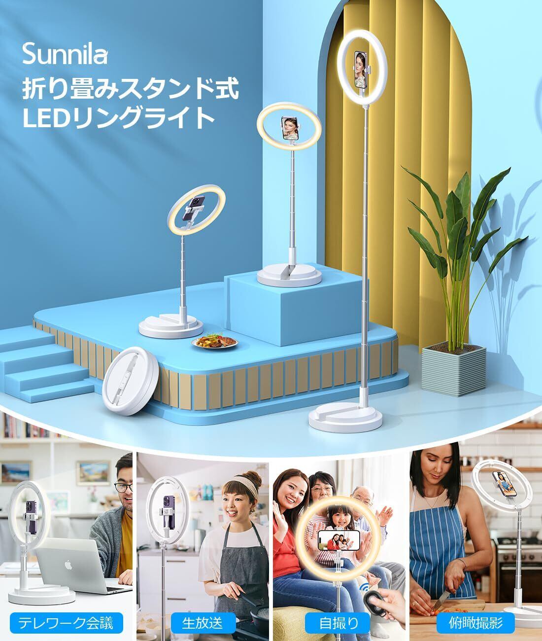 【数量限定】Sunnila LEDリングライト 折りたたみ一体式 【アップグレード版】 Sunnila 卓上地面両用 リングライト 撮影用 自撮り用 配信用ライト 俯瞰撮影対応 11.4インチ 3色モード 10段階調光 卓上スタンド USB給電式 テレワーク/web会議/Youtubeビデオ/TIKTOK/自撮り/生放送/化粧/Zoom/美顔ライト/カメラ撮影に適用 日本語取扱 (ホワイト) | ニコニコSHOP