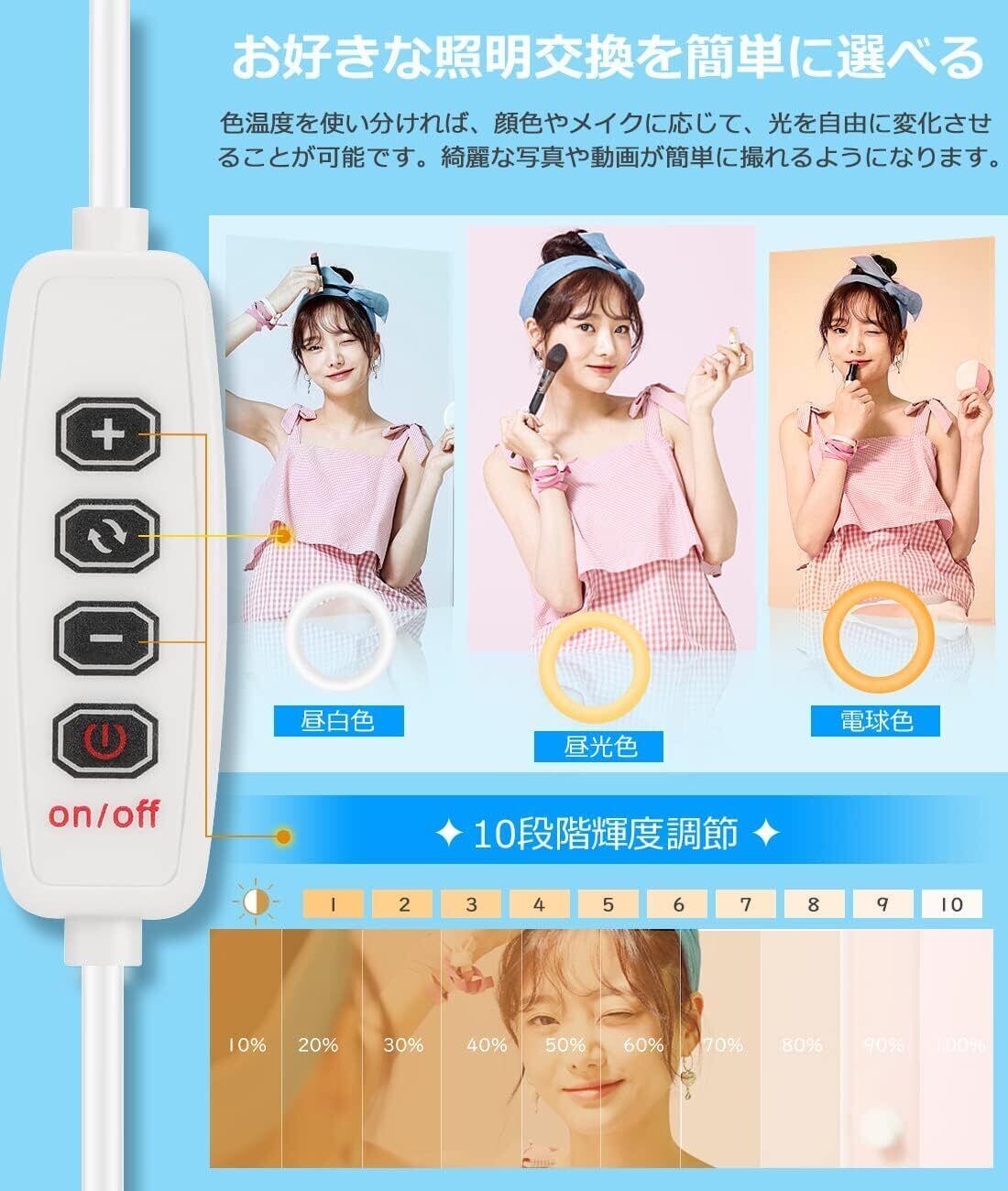 ✨【組み立てずに使用・収納便利】普通の撮影照明ライトと比べると、本製品は三脚不要、雲台不要、組立て不要、折りたたみ一体式のリングライトです。組み立てずにサッとセッティングして使うことができます。別付けで使うパーツはない、収納後の幅も約29CMで、厚さは約6CMになり、コンパクトで使用し終わったら引出しに収納でき、持ち運びのも楽になります。