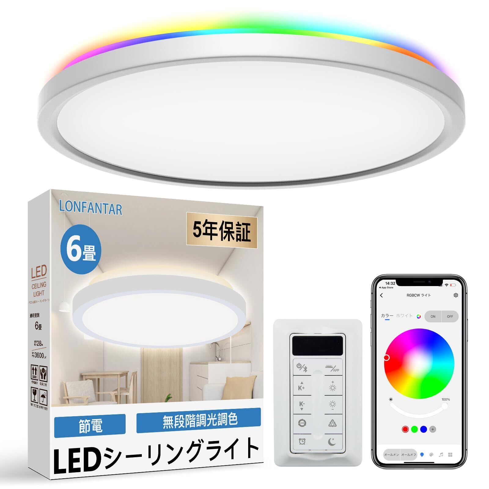 【特価商品】【2025新機能:シーリングライト+RGB+常夜灯】 Ledシーリングライト 6畳 28W 調光調色 間接照明 常夜灯 3600LM RGBモード メモリ機能 OFFタイマー (60秒/回) 省エネ 目に優しい 雰囲気ナイトライト リモコン付き スマホAPP操作 6~8畳用 和室/寝室/書斎/リビング/玄関/台所/廊下適用 PSE認証獲得 5年保証