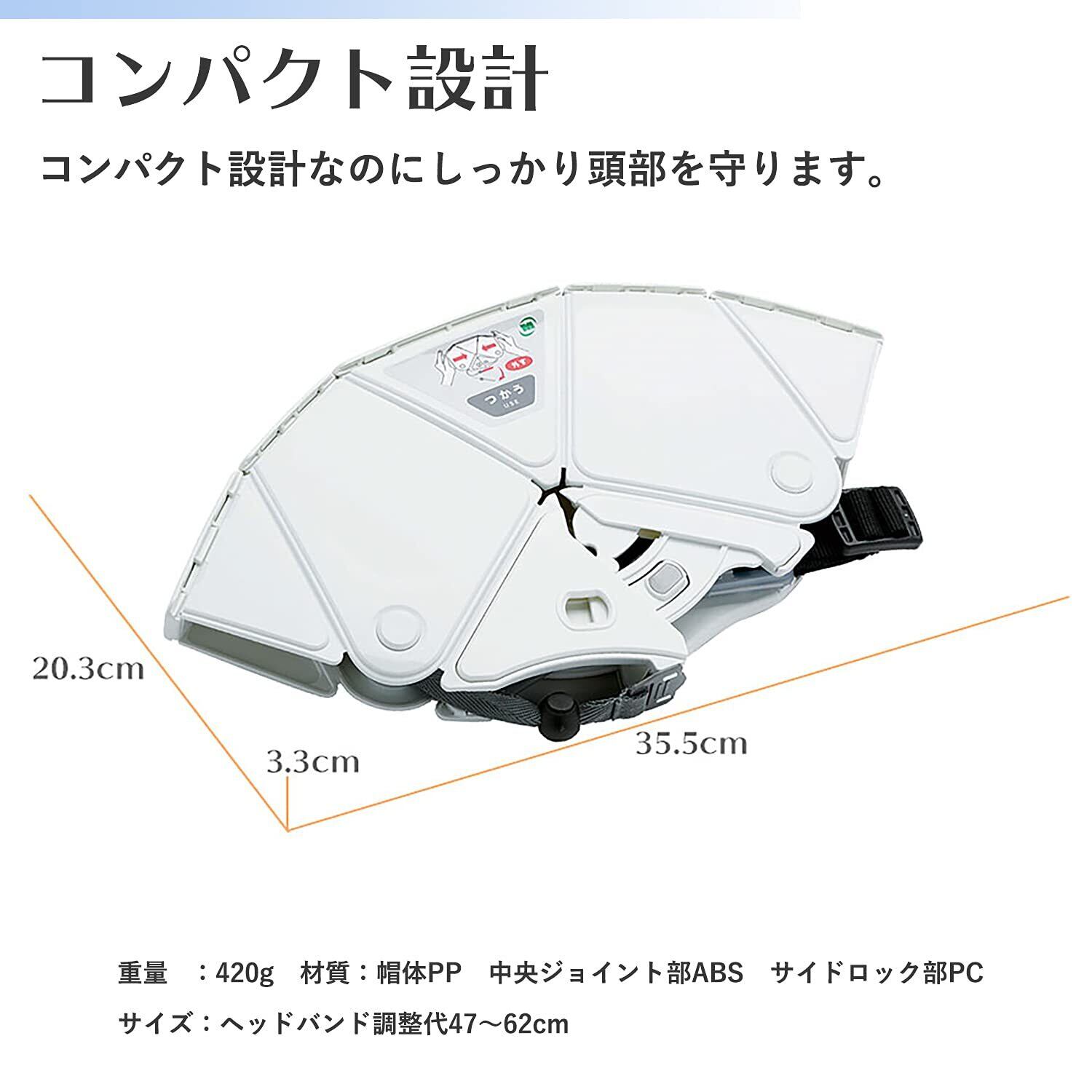 [特長] ●耐用年数:6年 ●業界最薄クラスの折りたたみヘルメット ●付属品:専用収納袋 ●使用区分:飛来/落下物用