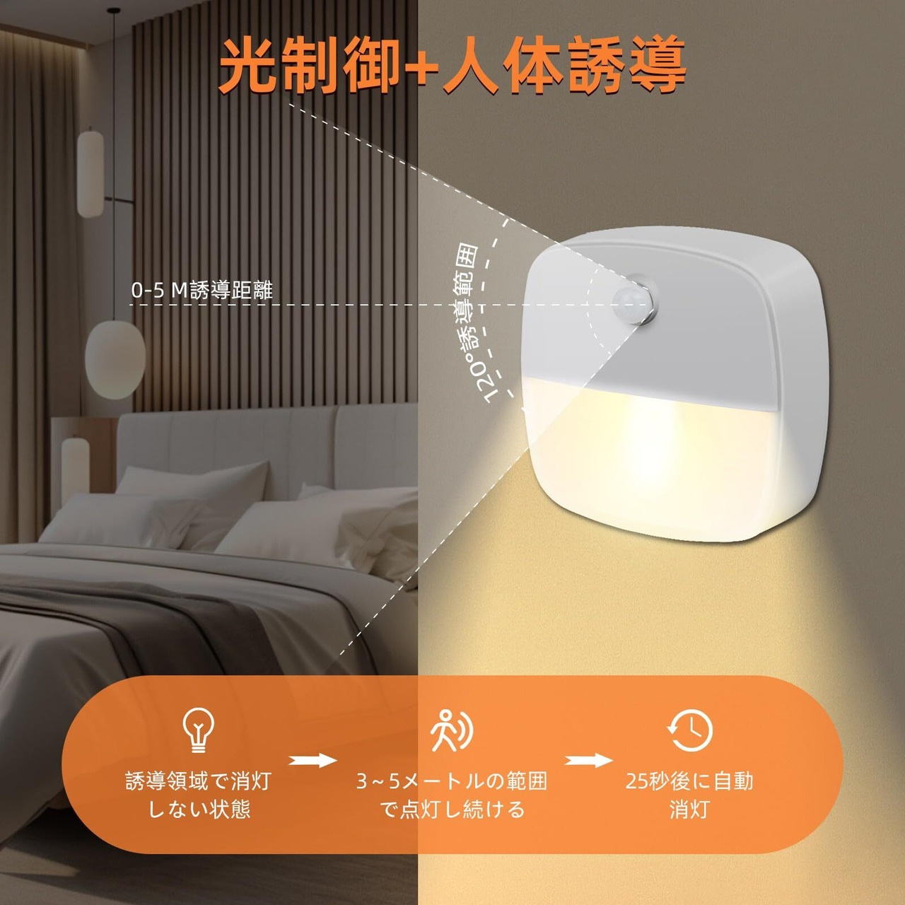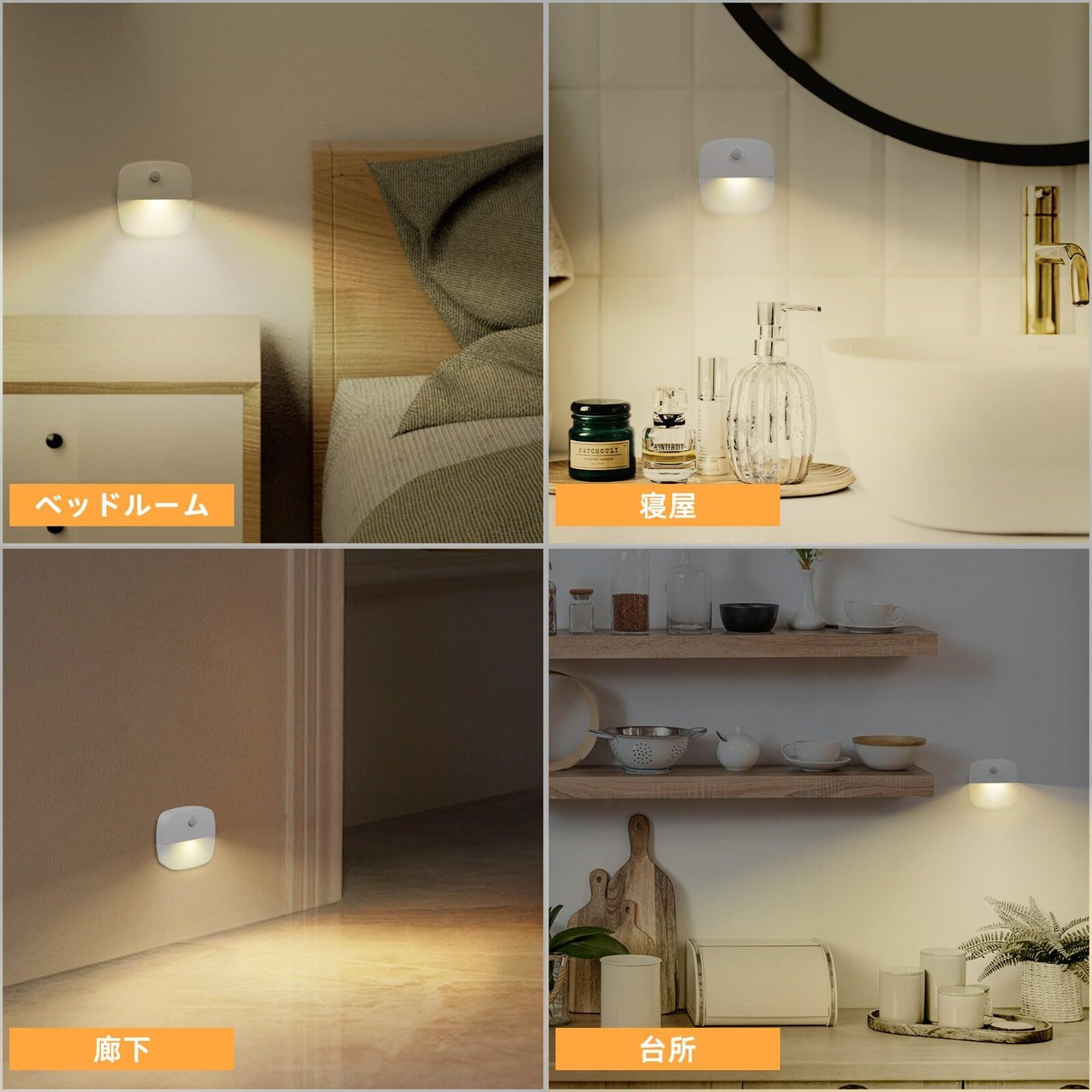 ✨【即時に白光と暖光を切り替えられます】LEDセンサーナイトライトは二色調節機能があり、必要に応じて白光と暖光を切り替えることができます。これにより、様々な空間に適した照明が提供されます。人体の動きを検出できなかった場合、45秒後に自動的に消灯し、エネルギーを節約し、電池の寿命を延ばすことができます。