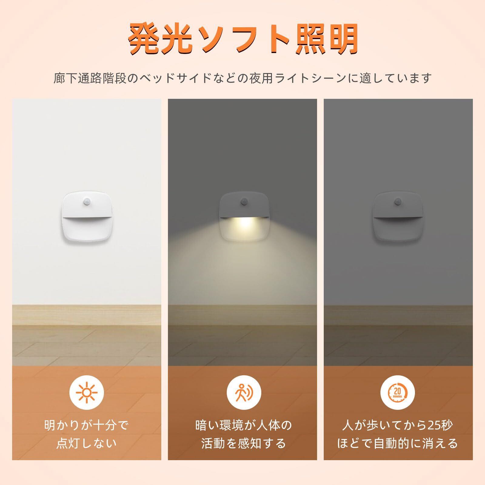 Ledセンサーライト人感センサーナイ いつでも白光・暖光を切り替え 光感応と人体感応の二重機能 自動点灯・自動消 廊下 寝室 玄関 階段 室内 3個セット