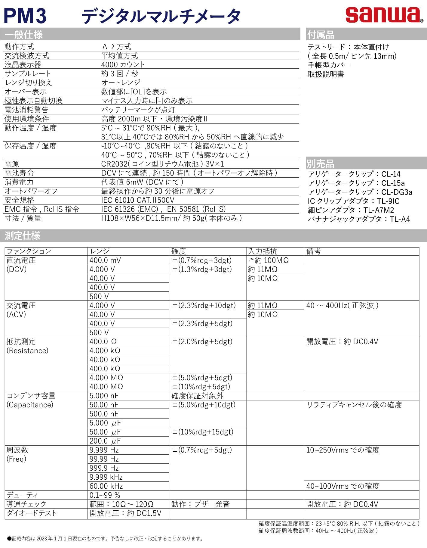 【2022最新】Sanwa(三和電気計器) デジタルマルチメーター PM-3