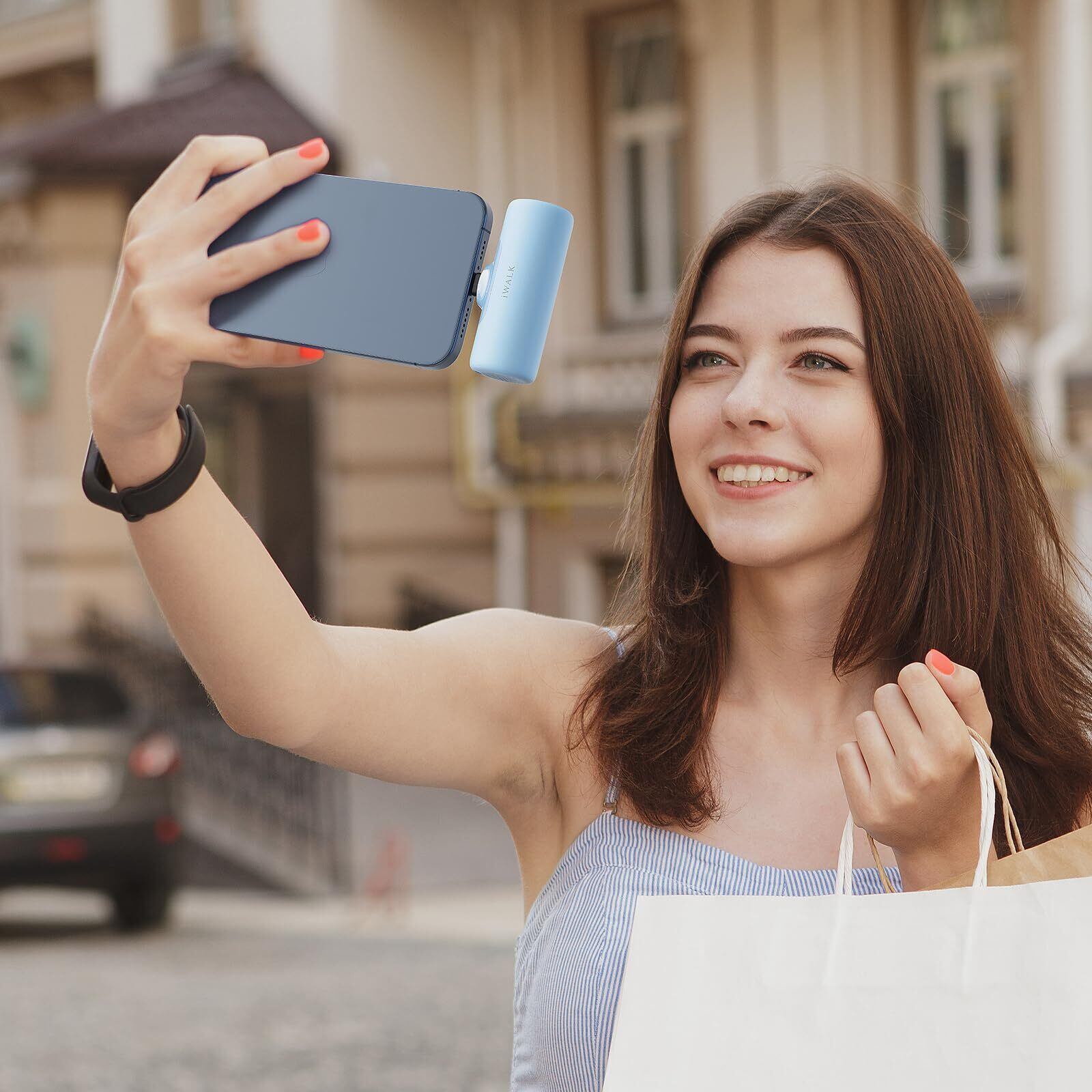 iWALK モバイルバッテリー 極小化 【USB-C端子一体型・iWALK 最小サイズ登場】 軽量 小型 4500mAh 急速充電 モバイル バッテリー タイプc アイウォーク type c コネクター内蔵 コードレス パススルー機能 残量インジケーター付き 可愛い 持ち運び便利 iPhone/AirPods/Android対応 「iPhone 16/15シリーズ対応」 PSE認証済 (ブルー)
