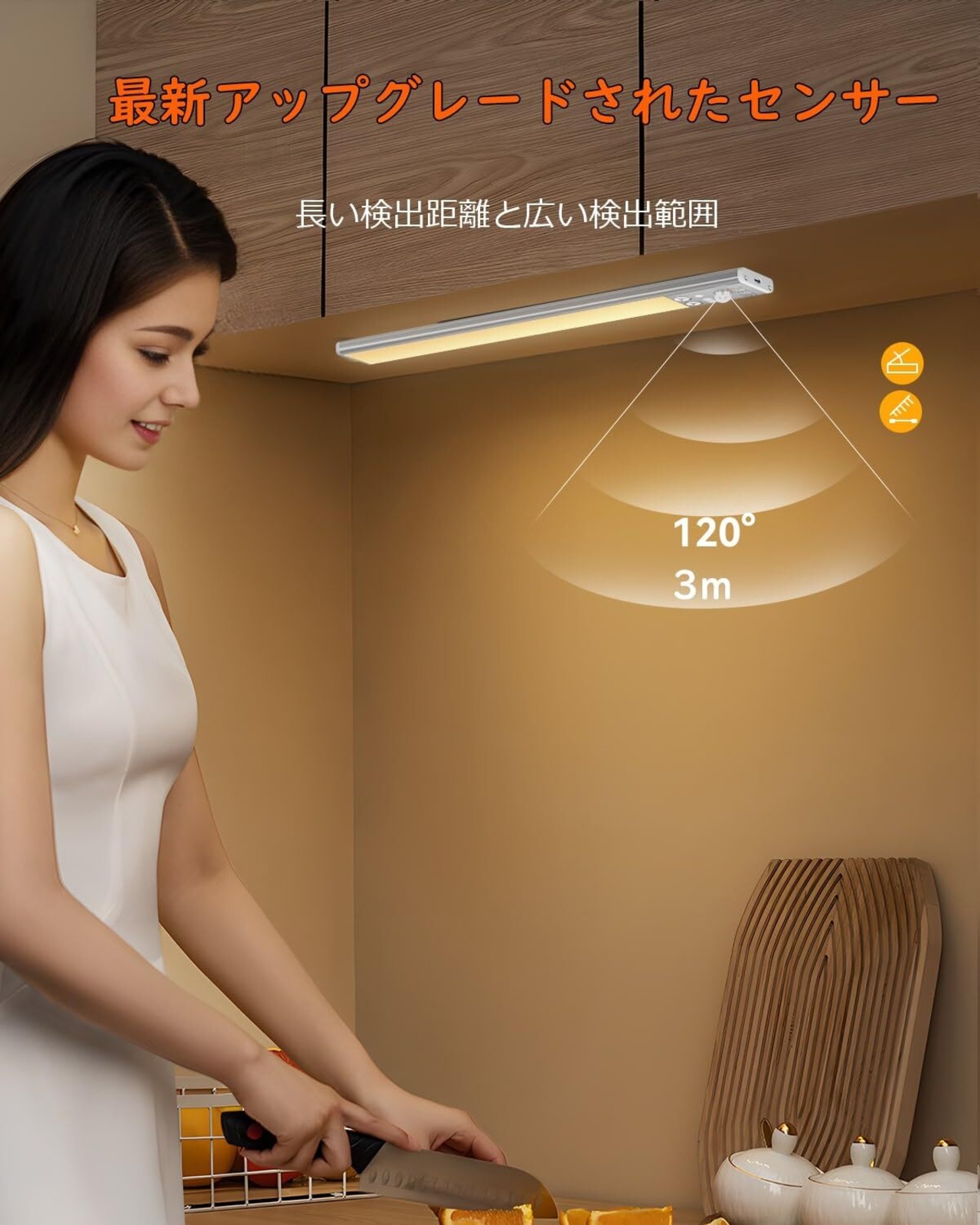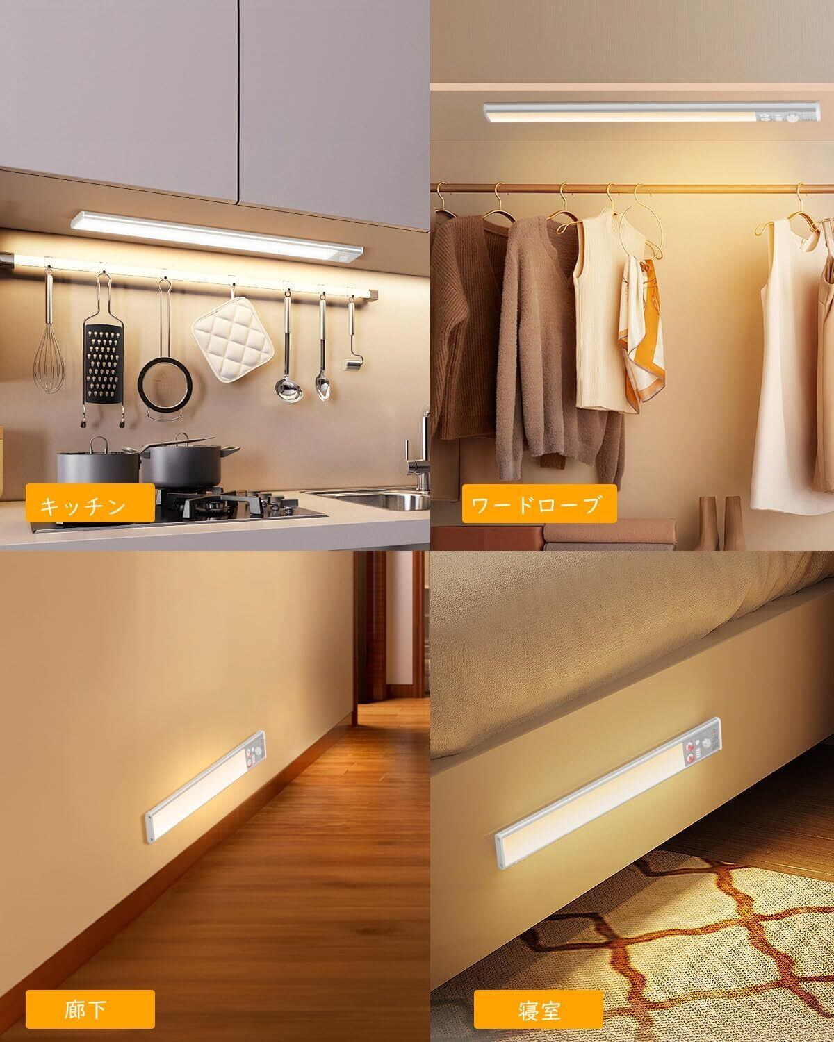 【連続点灯60時間可】人感センサーライト 充電式 室内 超薄 ledバーライト マグネット キャビネットライト クローゼット キッチン フットライト 足元灯 玄関灯 室内照明 電球色 昼白色 30cm 2個入