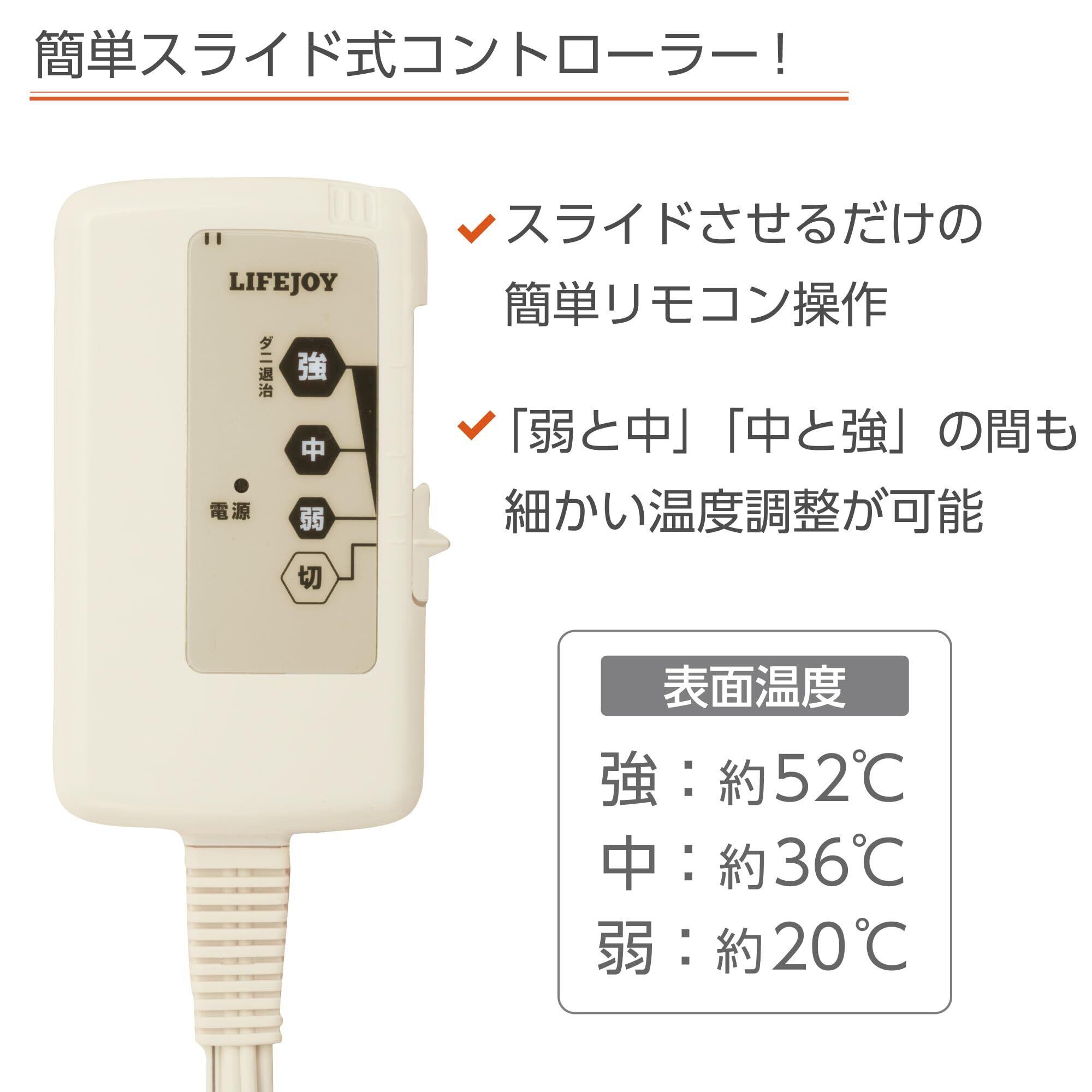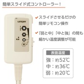 【使い方簡単】コントローラーのスライドで温度調節が感覚的にできます。『弱・中・強』の三段階だけでなく、弱から中の間、中から強の間と細かい温度設定も可能です。お好みの温度に設定してお使いいただけます。