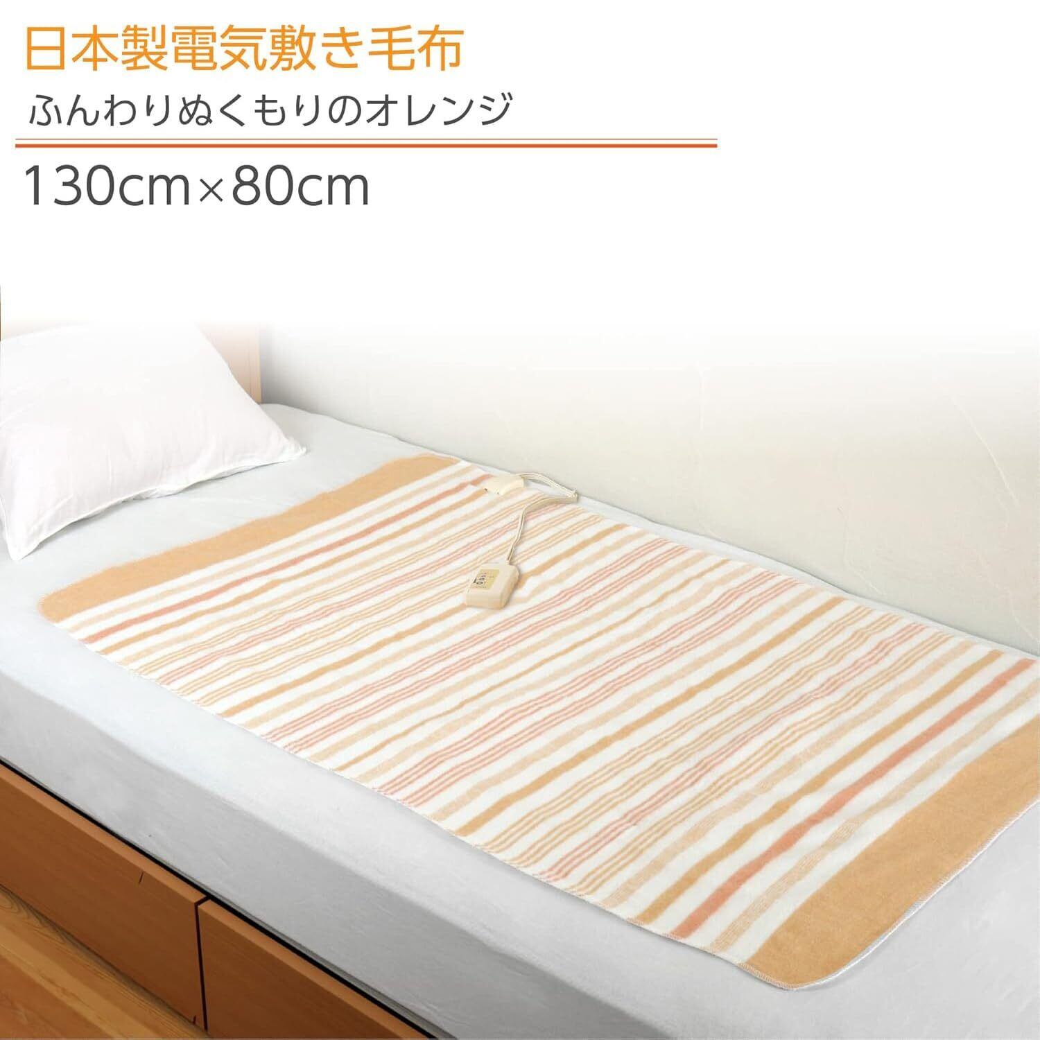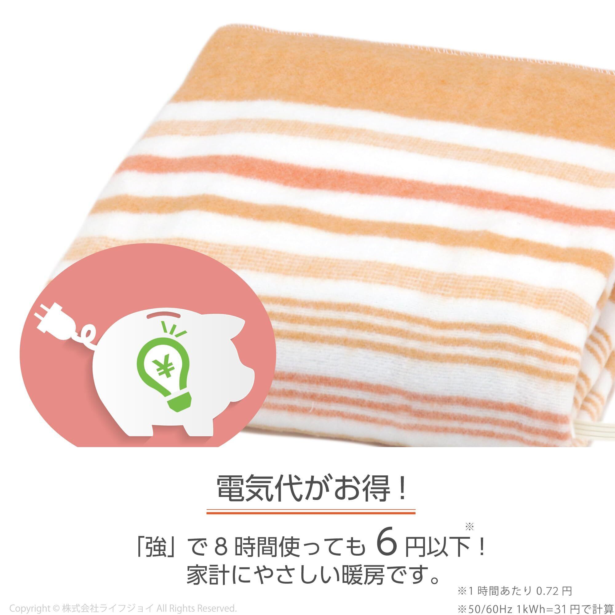 ライフジョイ 電気毛布 敷き シングル オレンジ 130cm×80cm 洗える 省エネ JBS401D