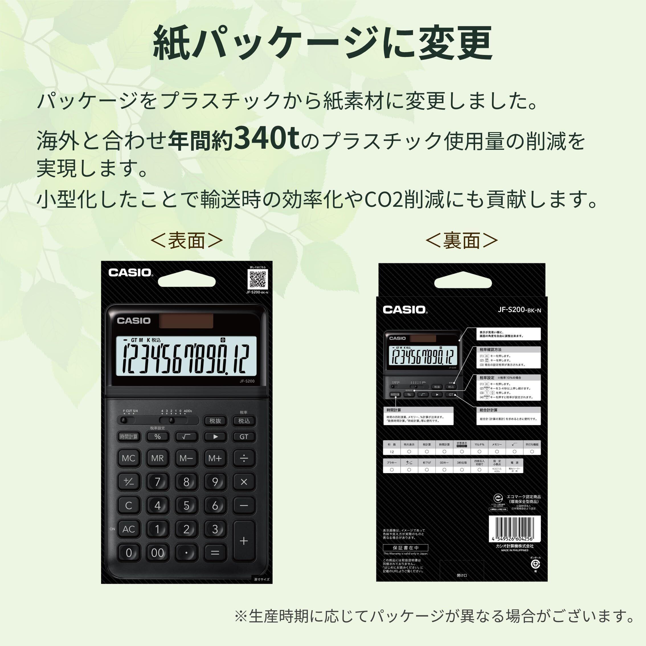 カシオ スタイリッシュ電卓 ブラック 12桁 ジャストタイプ JF-S200-BK-N