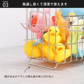 【水切れが良いので清潔です】網状のバスケットだから、バスケットで引っ掛け収納をすることで、シャンプーたお子供様のおもちゃなどのボトルに付着した水分を自然と落としてくれます。水分残りによる水アカヌメリも防ぐことができ衛生的。
