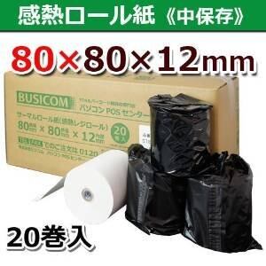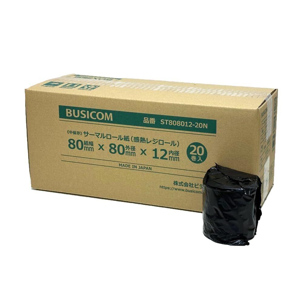 ビジコム純正 国産 感熱レジロール紙 80mm幅×外径80φ×内径12mm 20巻 芯あり 中保存 ST808012-20N