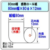 ロール紙サイズ:幅80mm×外径80mm×内径12mm (80×80×12)