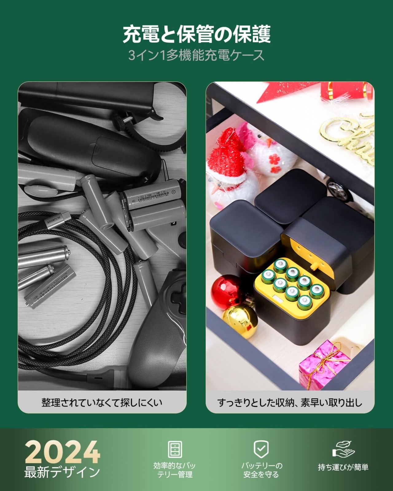 【集積充電と保存】リチウム電池充電器はマグネティックデザインを採用し、8つの独立した充電スロットを持ち、充電と保存を一体化させ、電池の保存と持ち運びをより便利にし、自由に1つ~8つの組み合わせでAAリチウム電池を充電するとサポートします。