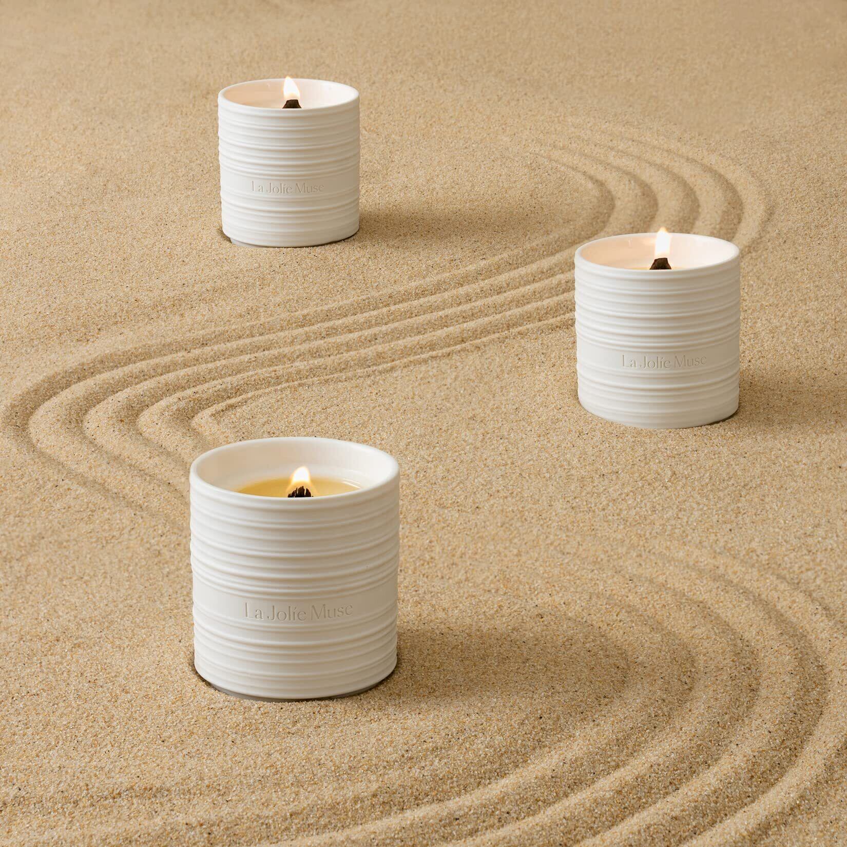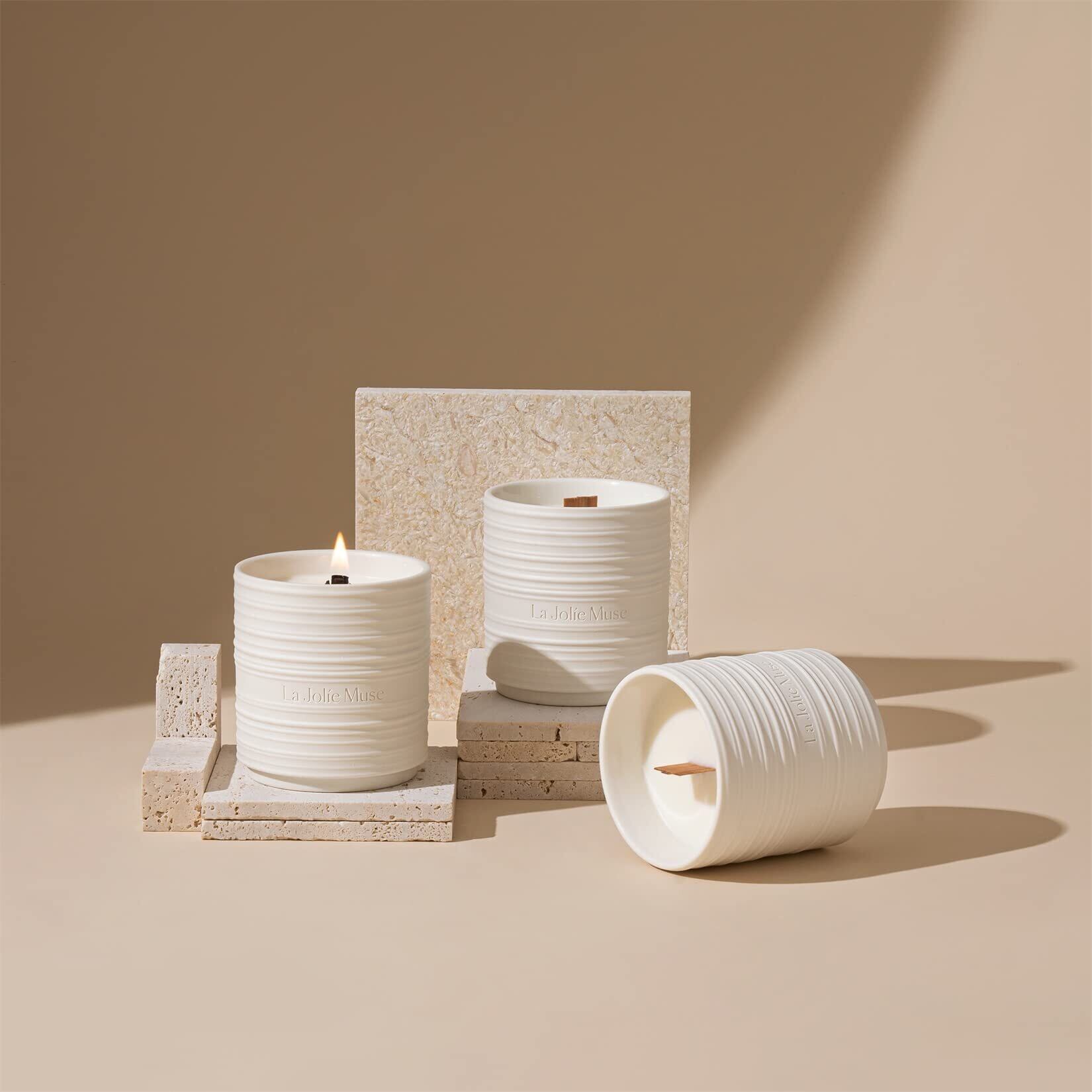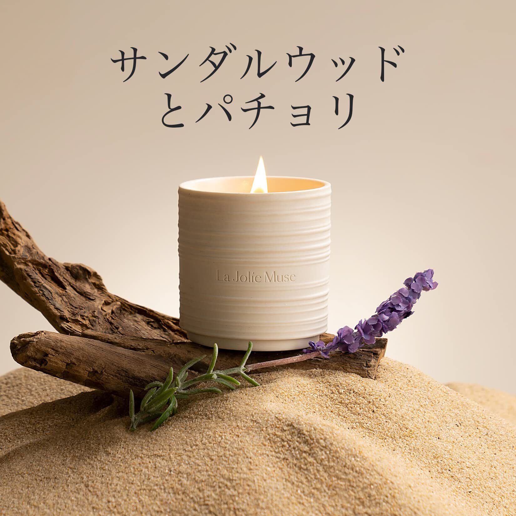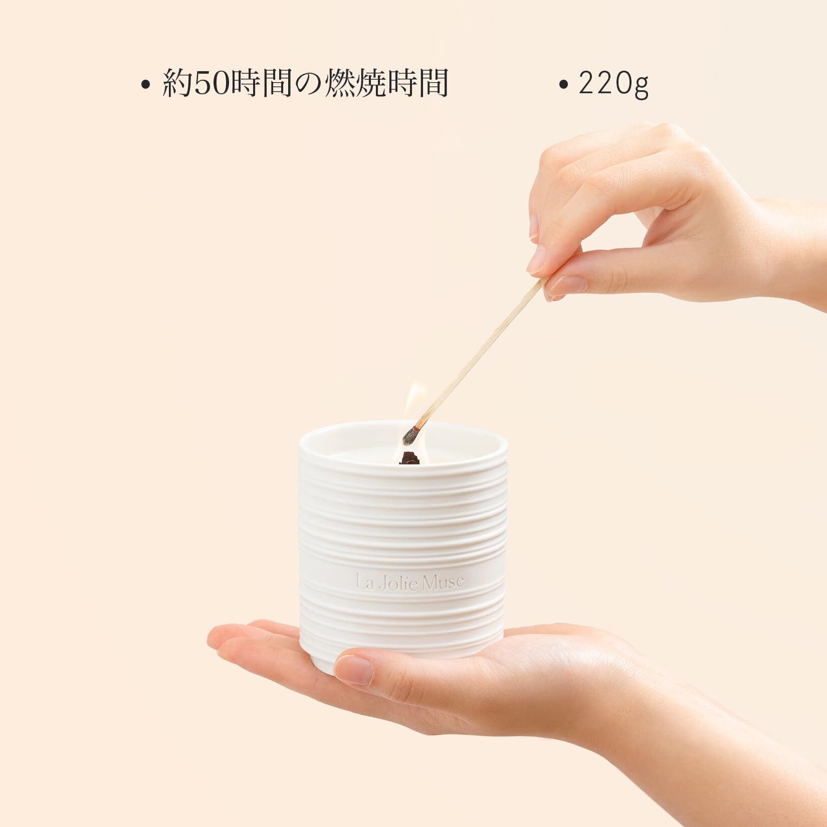 LA JOLIE MUSE アロマキャンドル サンダルウッドとパチョリの香り 木芯 天然ソイワックス 陶器缶 220g 燃焼時間50時間 女性向け ギフト