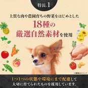 高品質の肉や農園育ちの野菜をはじめとした18種類以上の厳選自然素材を使用