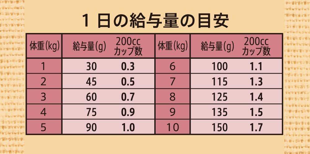チキン(肉)、チキンミール、エンドウマメ、ラムミール、乾燥ポテト、レンズマメ、鶏脂*1、ポテトでん粉、ニンジン、ヒヨコマメ、タンパク加水分解物、乾燥チコリー繊維、エ…
