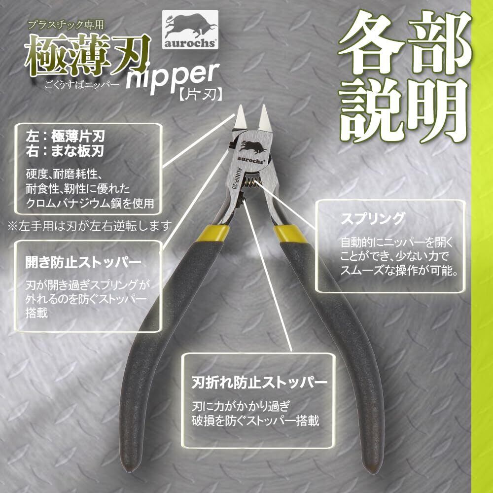 aurochs 極薄刃 ニッパー 片刃 精密 プラスチック専用 工具 プラモデル 模型 ゲートカット (グレー&ライム/右手用)