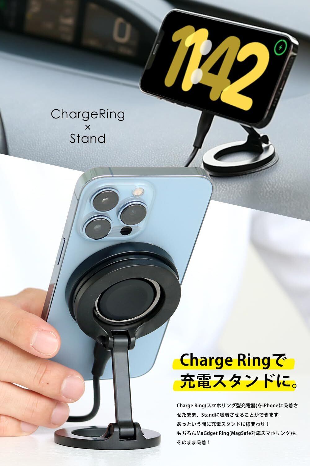 【Charge Ringを吸着したままの使用が可能】チャージリング(別売)と組み合わせて使用すれば、MagSafe充電スタンドに様変わり!マグネットベースの穴にシンデレラフィットするので、スマートに着脱できます。