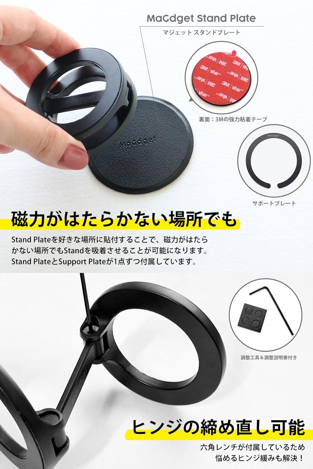 MaGdget Stand/マジェット スタンド MagSafe対応 マグネット スマホスタンド スマホホルダー マルチスタンド 携帯スタンド 車 車載ホルダー 折り畳み式 角度自由 ヒンジ調整工具付き (Black)