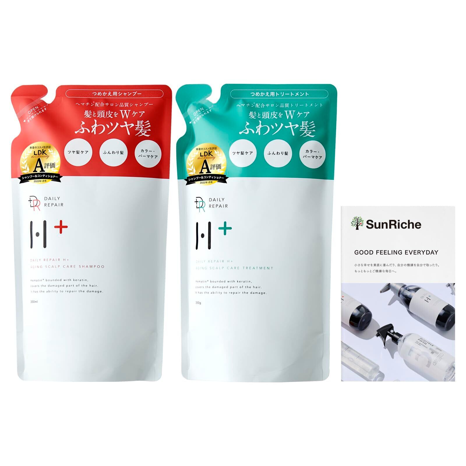 DRH+ デイリーリペア スカルプシャンプー(350ml)&トリートメント(350g)【ヘマチン エイジングケア ダメージ補修】(詰め替えセット)シリアルナンバー付