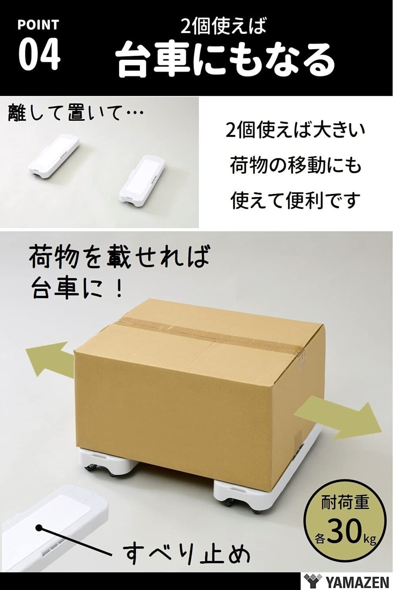 【特価商品】山善(YAMAZEN) 台車 スリム 耐荷重各30kg ストック・押入れ・キッチン収納 キャスターが目立たない すべり止め付き 幅13.9×奥行40.8×高さ6.4cm(1台あたり) 連結可能 平台車 スキマ忍者 完成品 ホワイト SNJ-30(WH)X2 | ニコニコSHOP
