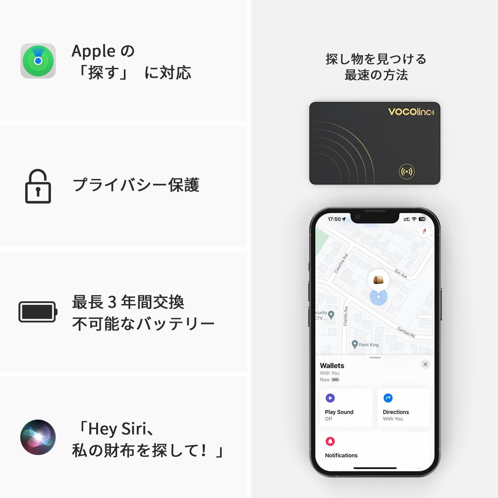 【忘れ物を簡単に見つける】VOCOlinc Airタグ カードを使用しているアイテムを Bluetooth 範囲内 (Bluetooth 範囲最大 60 m) で紛失した場合は、「探す」アプリで音を鳴らすか、Siri に助けを求めてください。