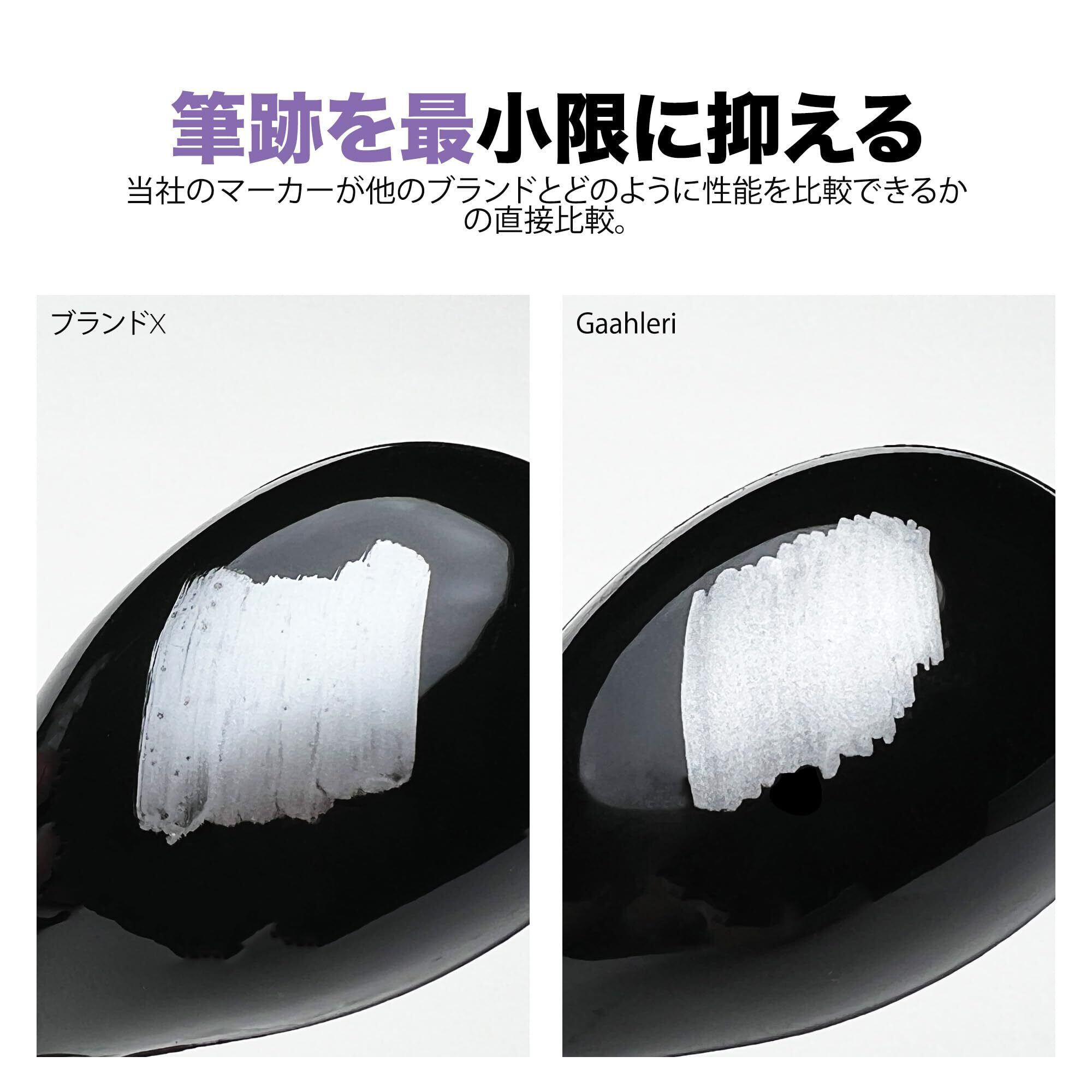 簡単に使用可能:インクはマーカー内部に保管され、必要な時にのみ活性化されるため、早期の乾燥を防ぎ、使用時にはすぐに利用できる状態が保たれます。滑らかで均一なカバーを実現し、他のブランドに比べて優れた性能を発揮し、完璧なメタリック効果を提供します。