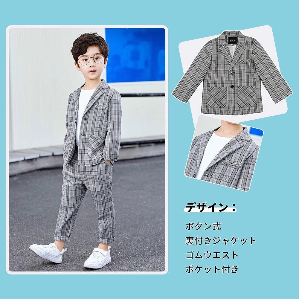 【商品構成】ジャケットとズボン、キッズ スーツ2点セット。人気なチェック柄スーツはフォーマルな場合だけでなくて普通着としても使えます。