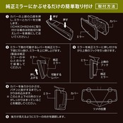 工具不要のカンタン取付。純正ミラーに覆いかぶせるようなイメージで挟み込むだけ。