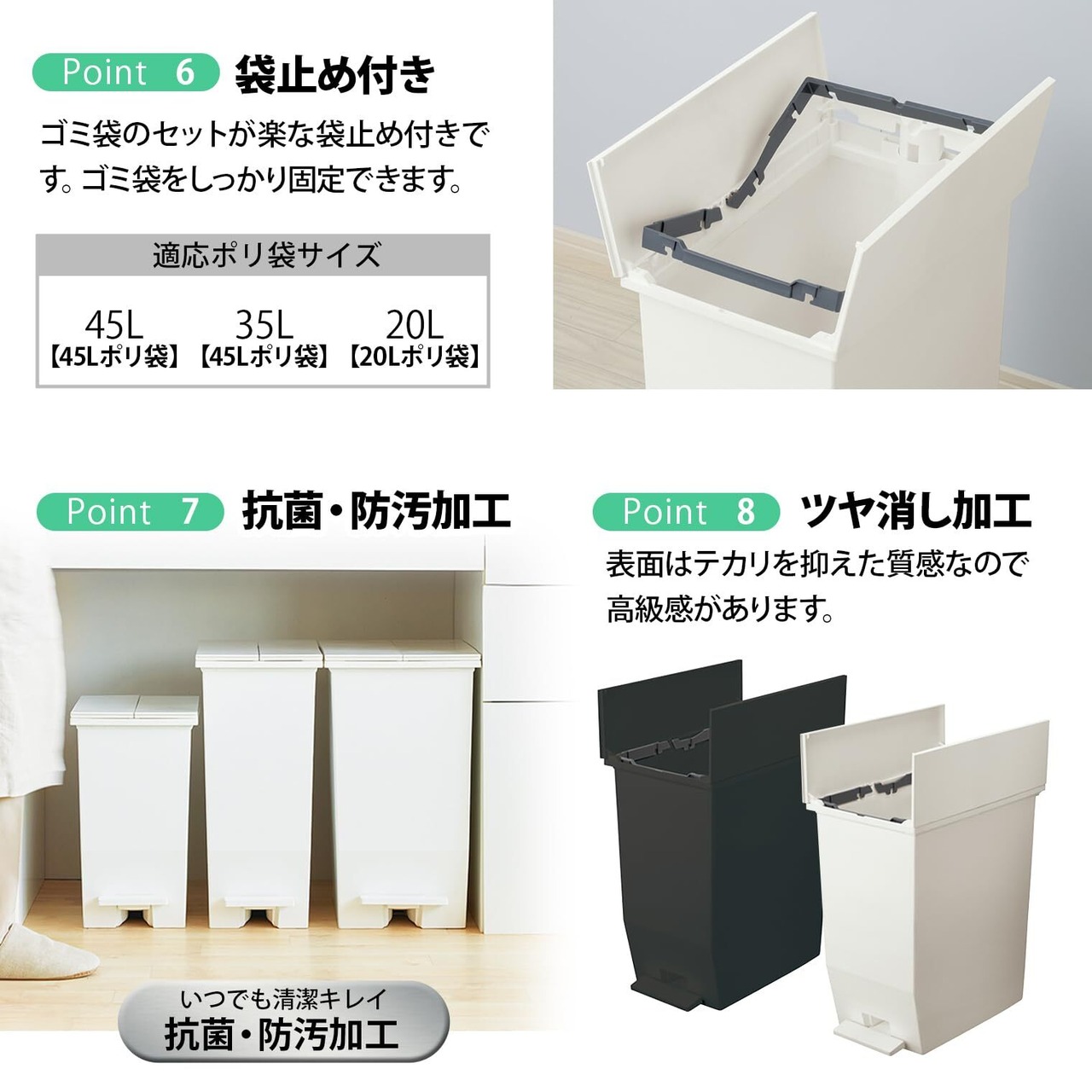 リス ゴミ箱 ペダル式 棚下 両開き ソロウ ペダルオープン ツイン 45L ホワイト 抗菌 防汚 加工 日本製 177463