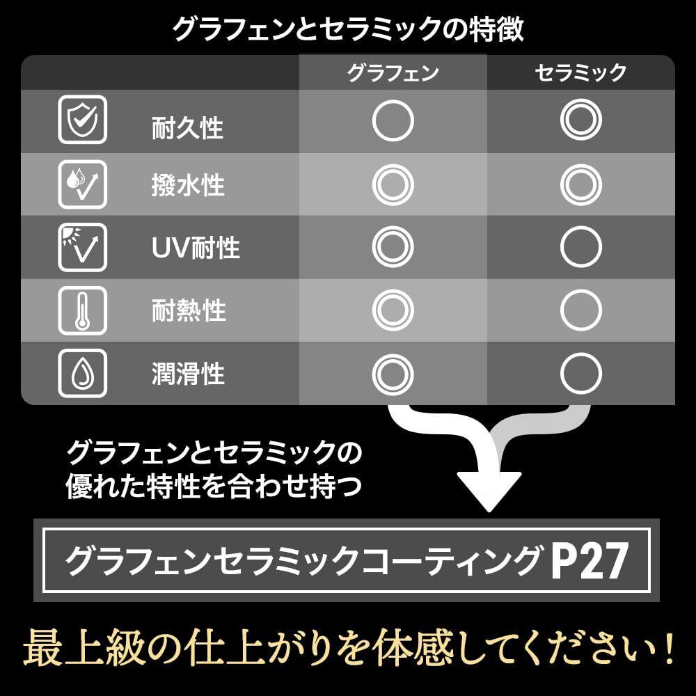 【グラフェンセラミック系コーティング】革新的なグラフェンセラミック系コーティングが、高温やUV、摩擦などあらゆる環境から愛車を守ります。