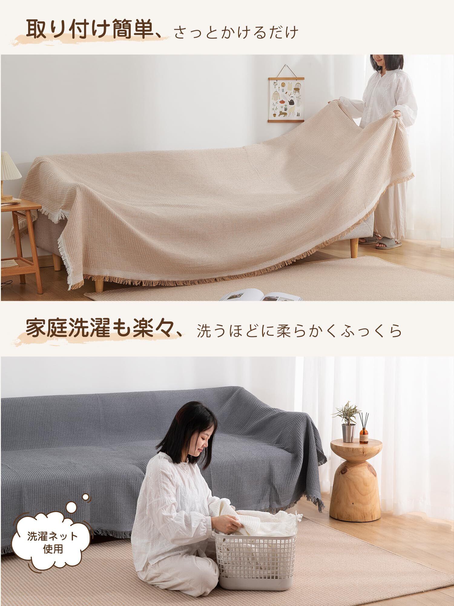・【幅広い使用範囲】かけるだけでソファー全体をカバーでき、防塵やキズ防止などの機能があり、ソファーをしかっりと保護できます。多機能で、ベッドカバー、テーブルクロス、冷房毛布、ひざ掛け、防塵カーペット、キャンプカーペット、旅行毛布などとして一年中活躍できます。