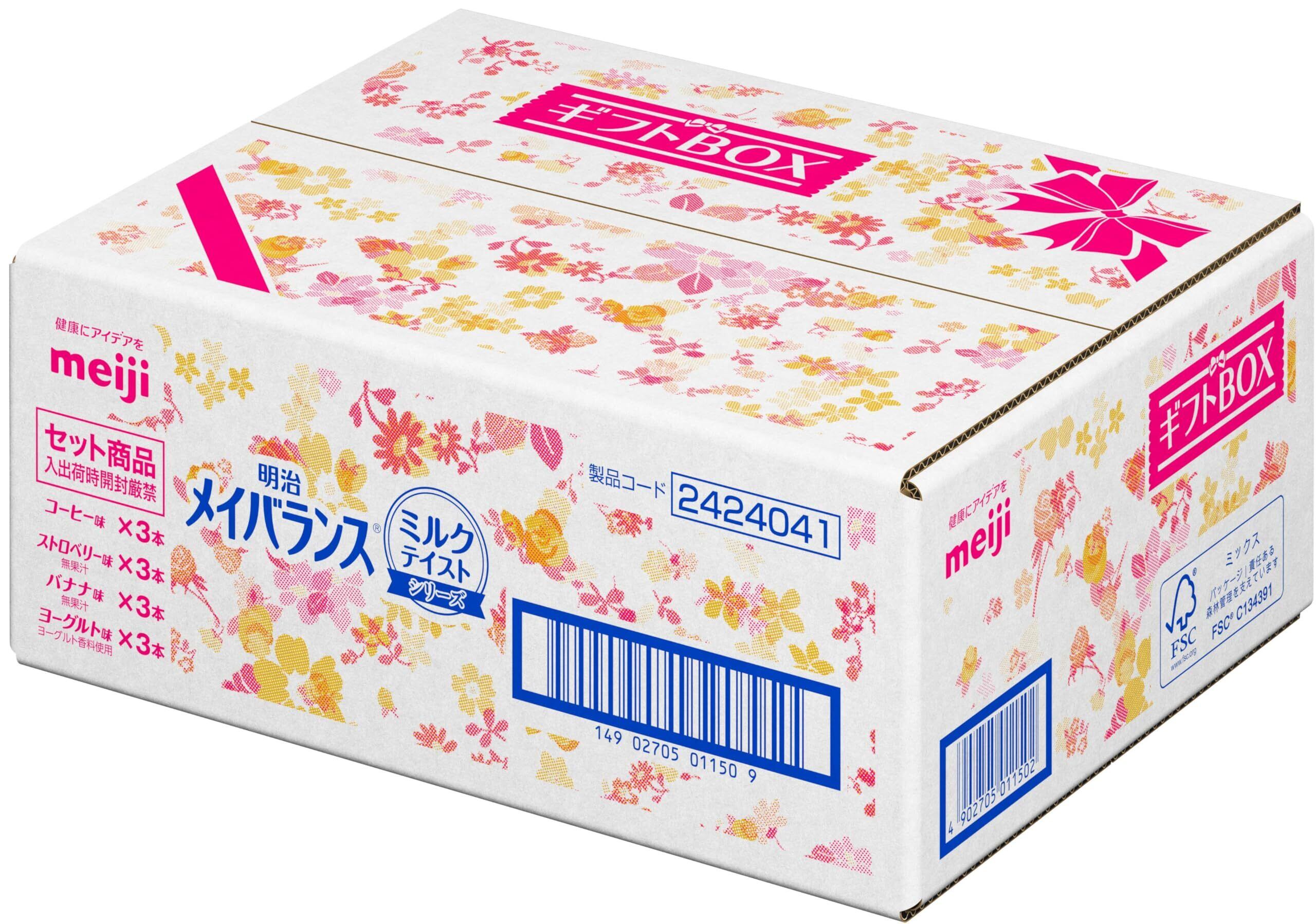 ●「明治メイバランスギフトBOX(ミルクテイスト)」は、毎日の食事で摂りきれない栄養をおいしく補給できる栄養サポート飲料です。